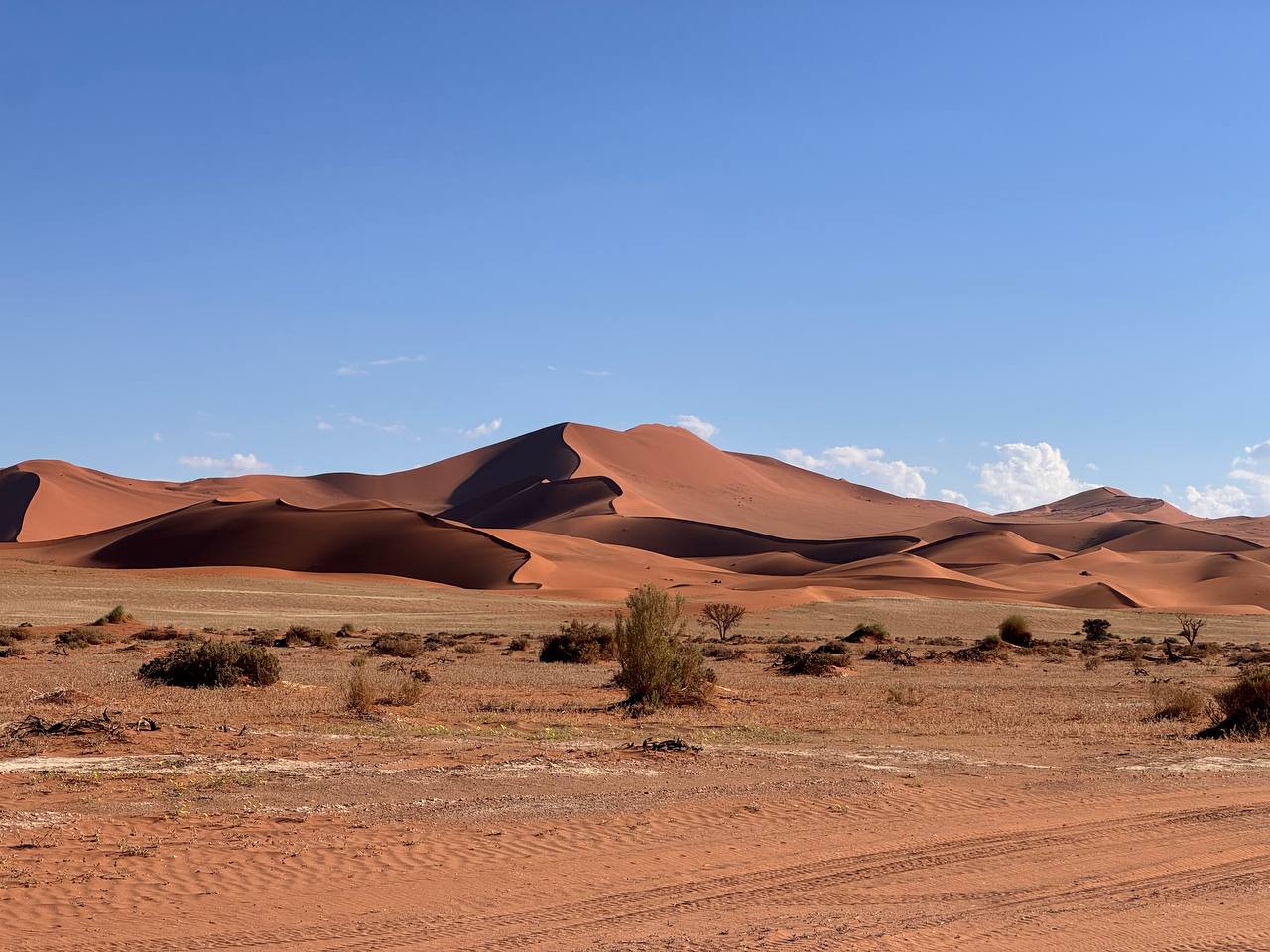 Сегодня выезжаем рано утром, чтобы попасть в Соссусфлей, пока воздух ещё мягкий и прохладный. Путь ведёт нас в сердце пустыни Намиб — туда, где поднимаются величественные красные дюны, а пейзажи становятся по-настоящему нереальными.