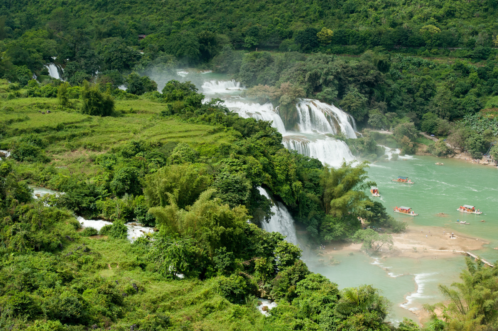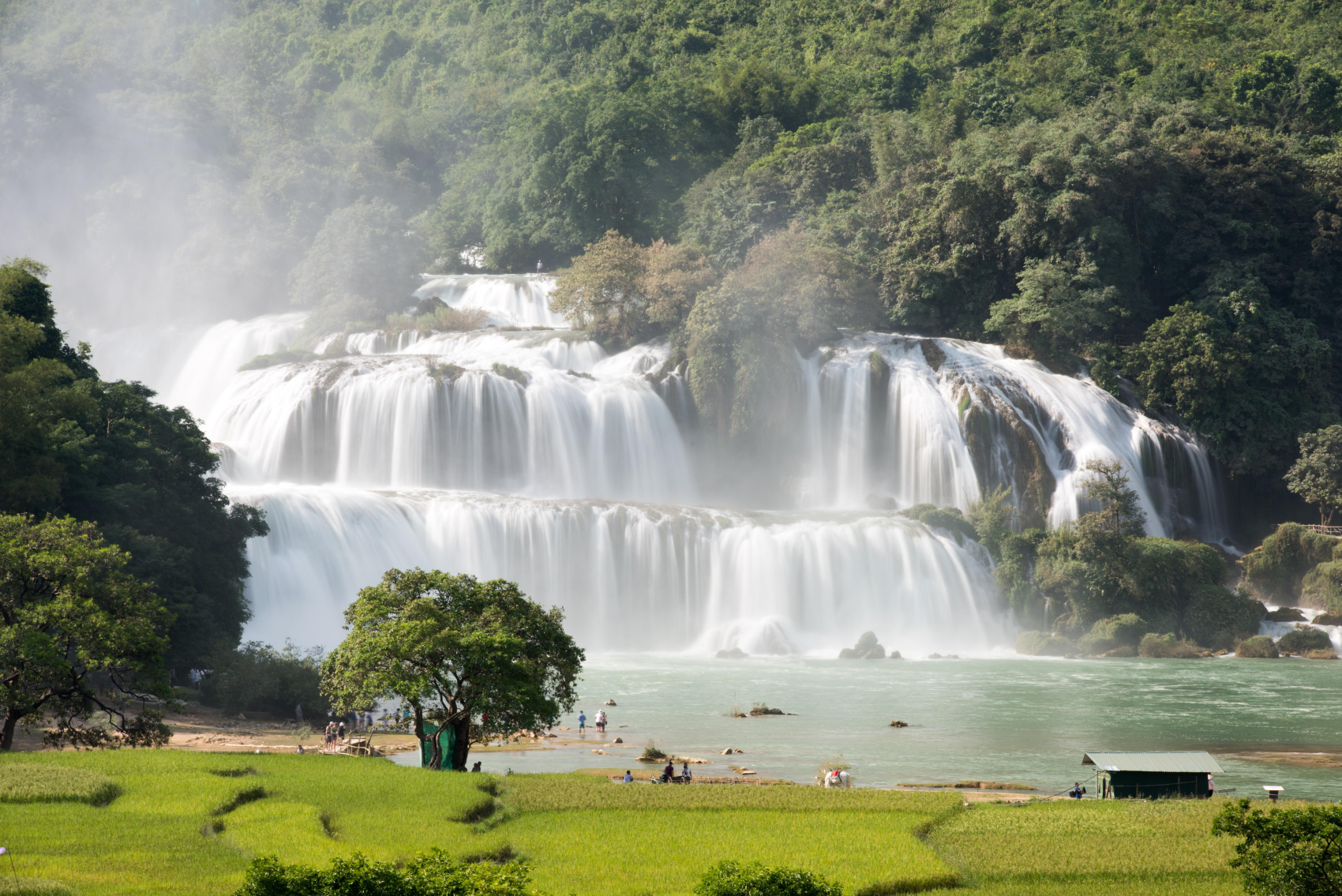 Kickstart your last day with a flavoursome breakfast, then check out and head toward Po Tau Market. This is a colourful ethnic market where locals gather to trade traditional crafts, fresh food and regional delicacies. You’ll have a while here to visit several French colonial buildings around the market, walk along the bank of the Quay Son River, or hike up a hilltop for a lovely view of the largest valley in Trung Khanh District.