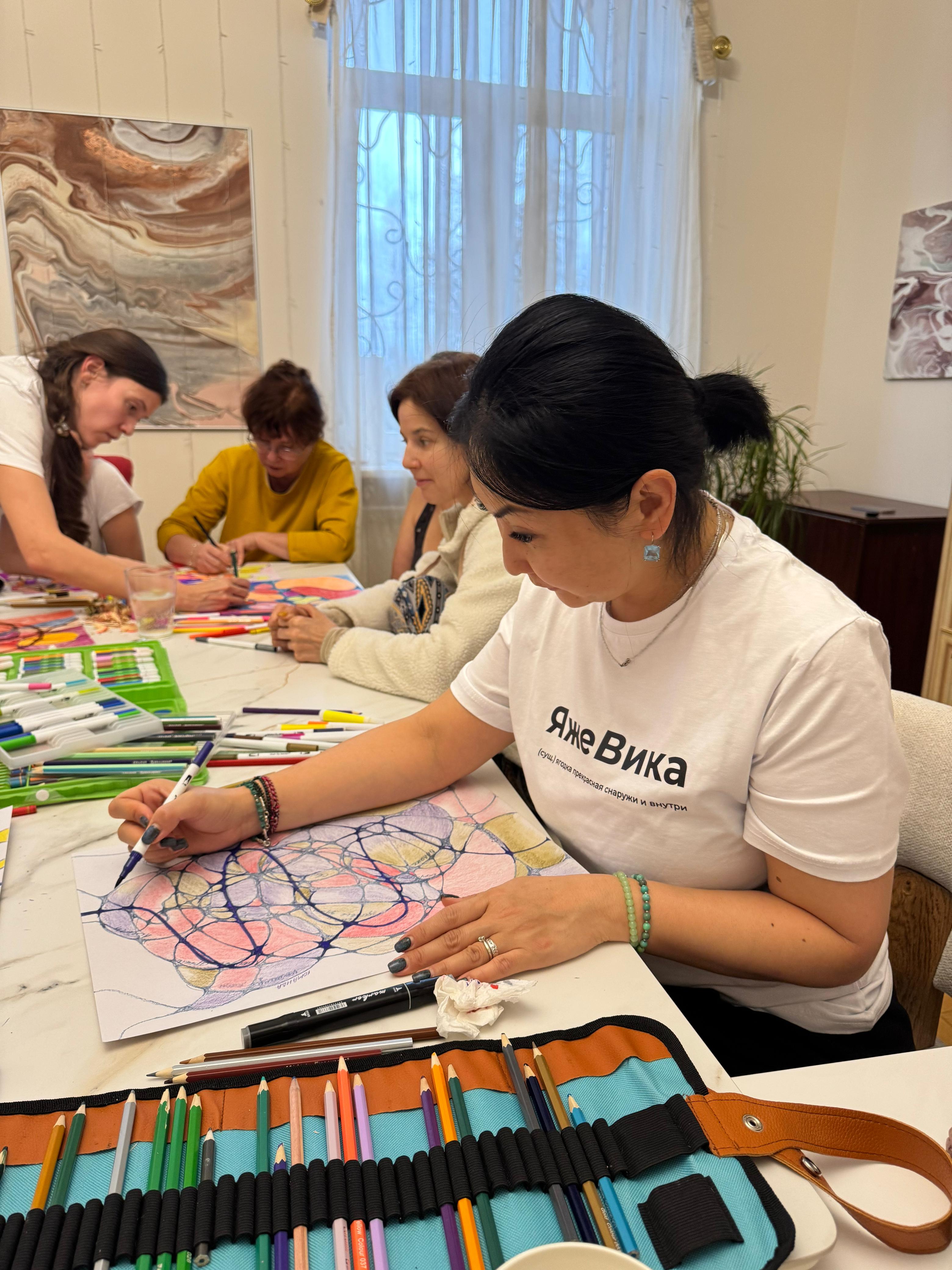 16:30 - 19:00 Творческий мастер-класс (в зависимости от дня мастер-классы будут меняться, в программе на выбор мастера: Арт рисование, нейрорисование, игра Лила, изготовление свечей из вощины и тд.)