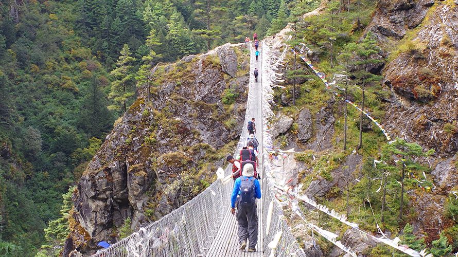 В Лукле мы отдаем наши вещи портерам и начинаем пешеходную часть маршрута. Предстоит непродолжительный 8-километровый переход в посёлок Пуия, находящийся на высоте 2800 метров, где мы наконец отдохнём от ночной дороги.