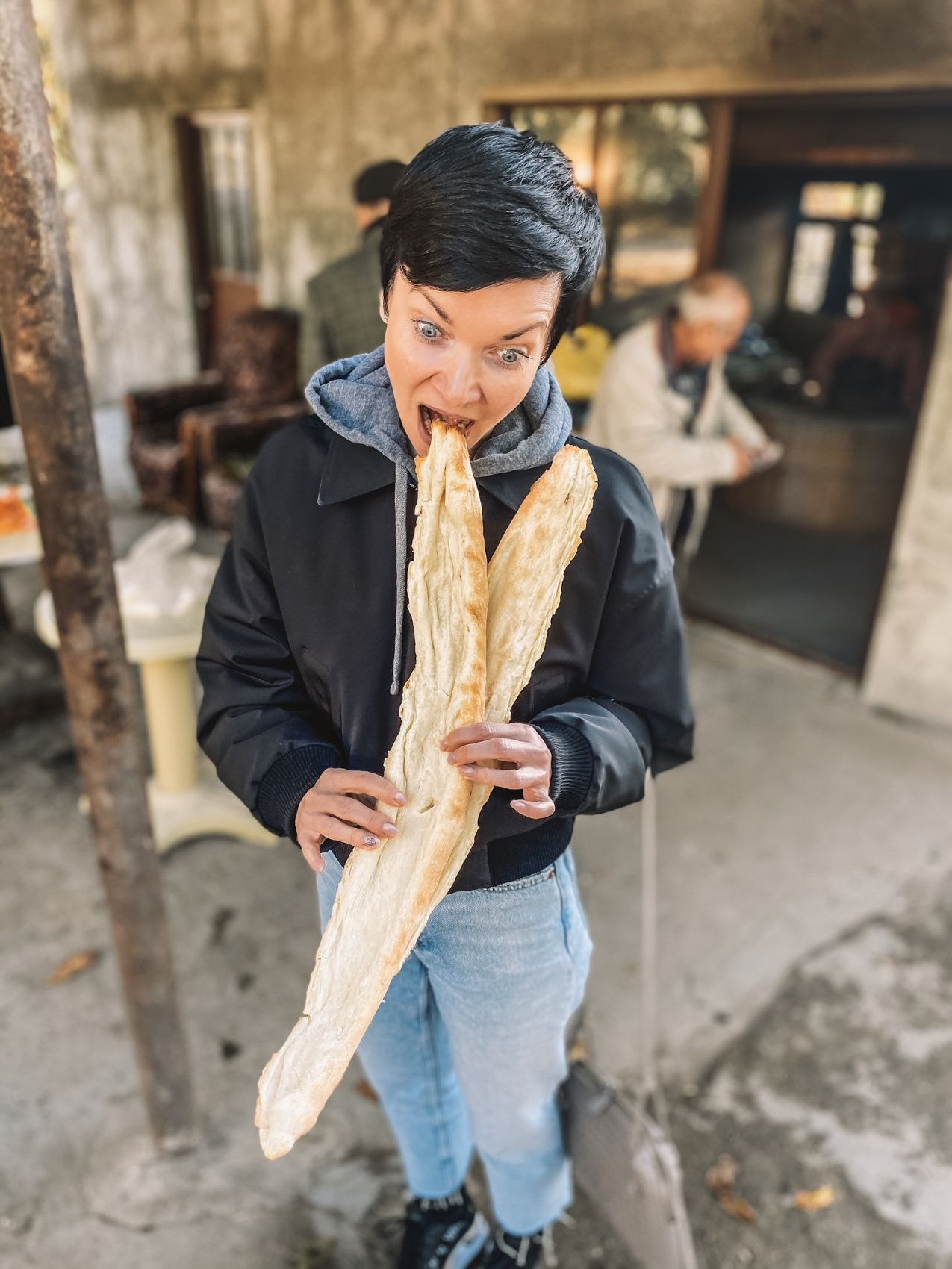 Сначала поехали в самый винный регион Грузии- Кахетию, будем готовить свежий хлеб, и сами выпекать его в тоне- печи.