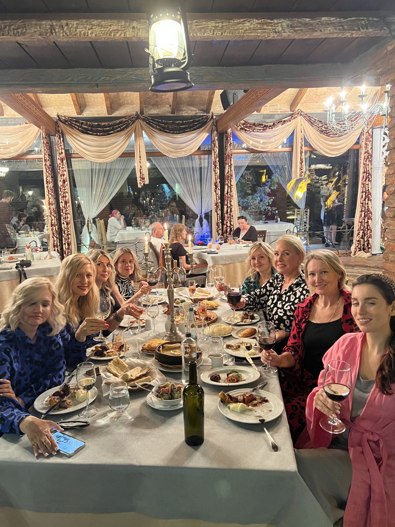 И вечером собираемся на ужин, чтобы познакомиться и обсудить план нашего дальнейшего путешествия, и конечно, уже учимся произносить тосты по-грузински!