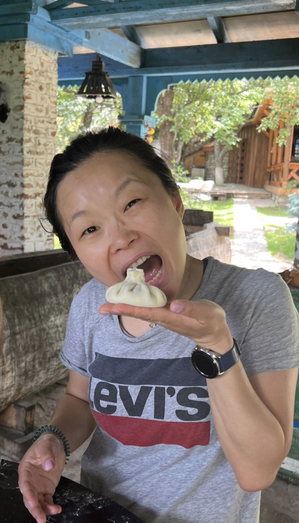 Расскажу, что здесь рядом делают самое вкусное мороженое из саперави) и едем дальше дегустировать хинкали в знаменитом кафе "Салобиа", которому уже больше 60 лет, а кухня неизменно вкусная, домашняя.
