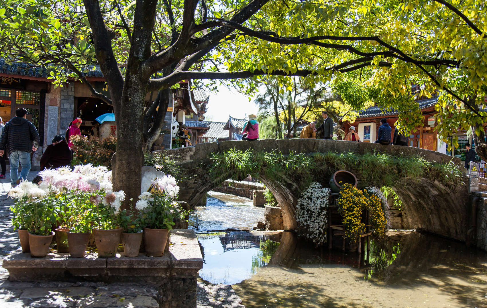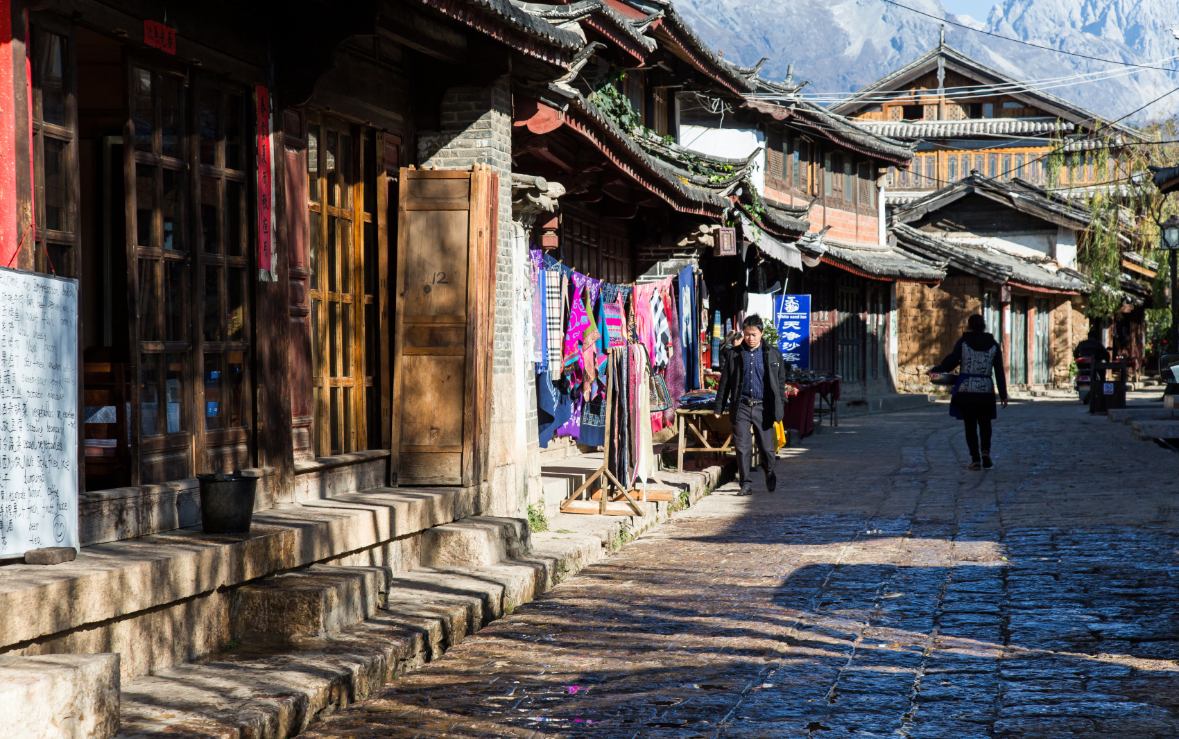 Утром наш поезд прибывает в Лицзян (2400 м над уровнем моря). Забросив вещи в отель, мы идем гулять по полной колорита старой части города, внесенной в список мирового культурного наследия ЮНЕСКО. Старый город Лицзяня называется Даянь и представляет собой лабиринт узких улочек, сформированных из старинных усадеб народности наси.