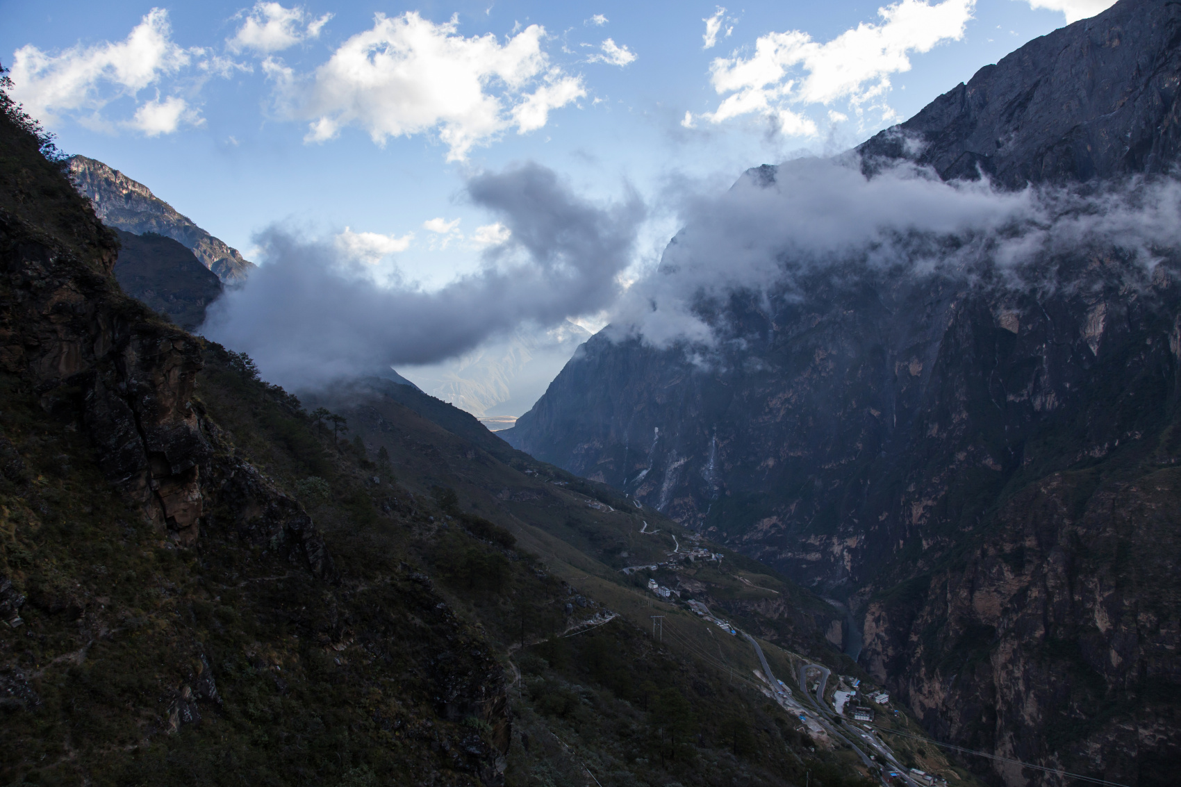 Каньон реки Янцзы меcтами очень узкий - один из самых глубоких в мире, расположенный на высоте 2500 м. Его западную стену формируют вершины горы Хаба (5396 м) и восточную - Юлунсюэшань (5596 м).