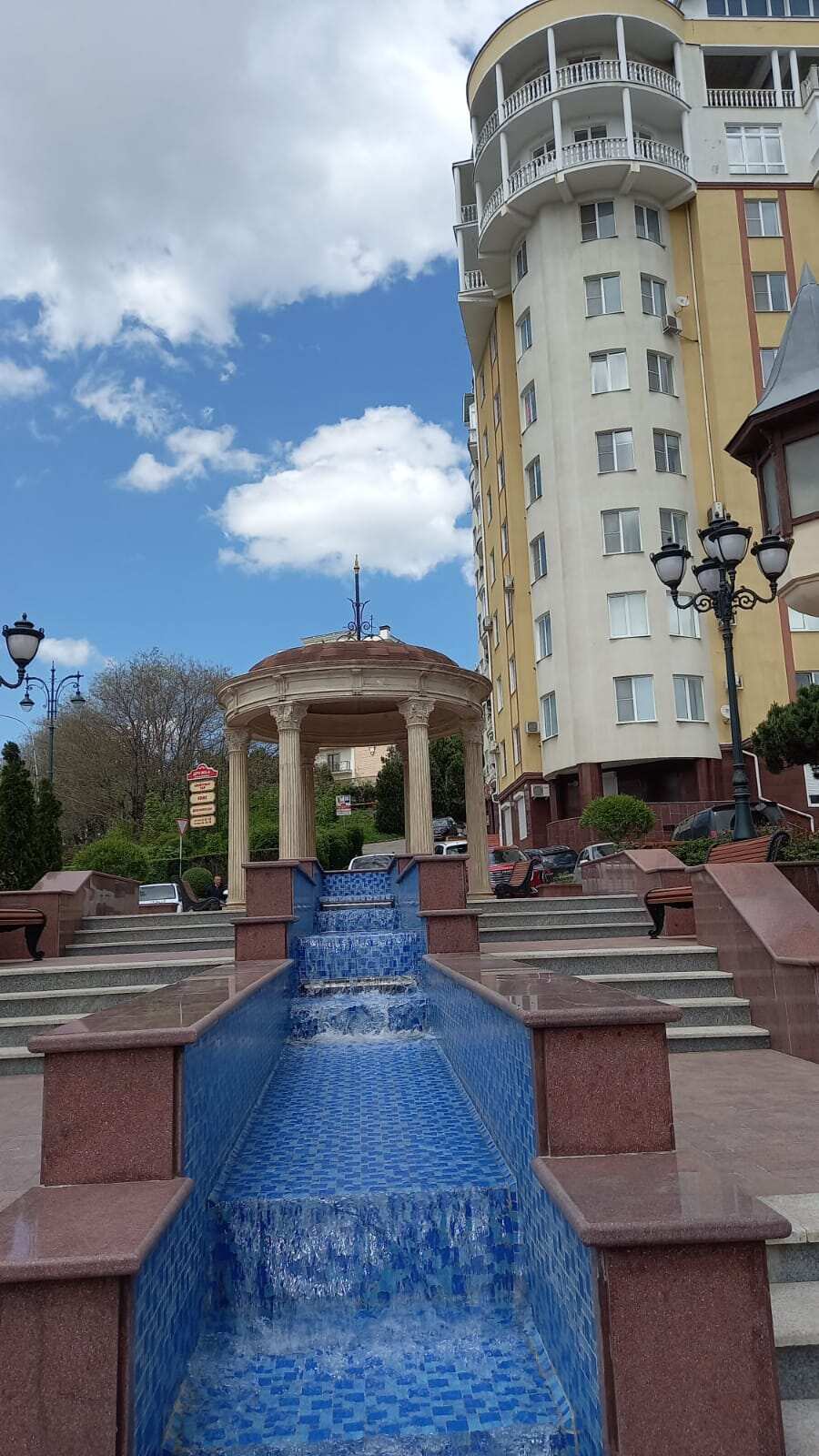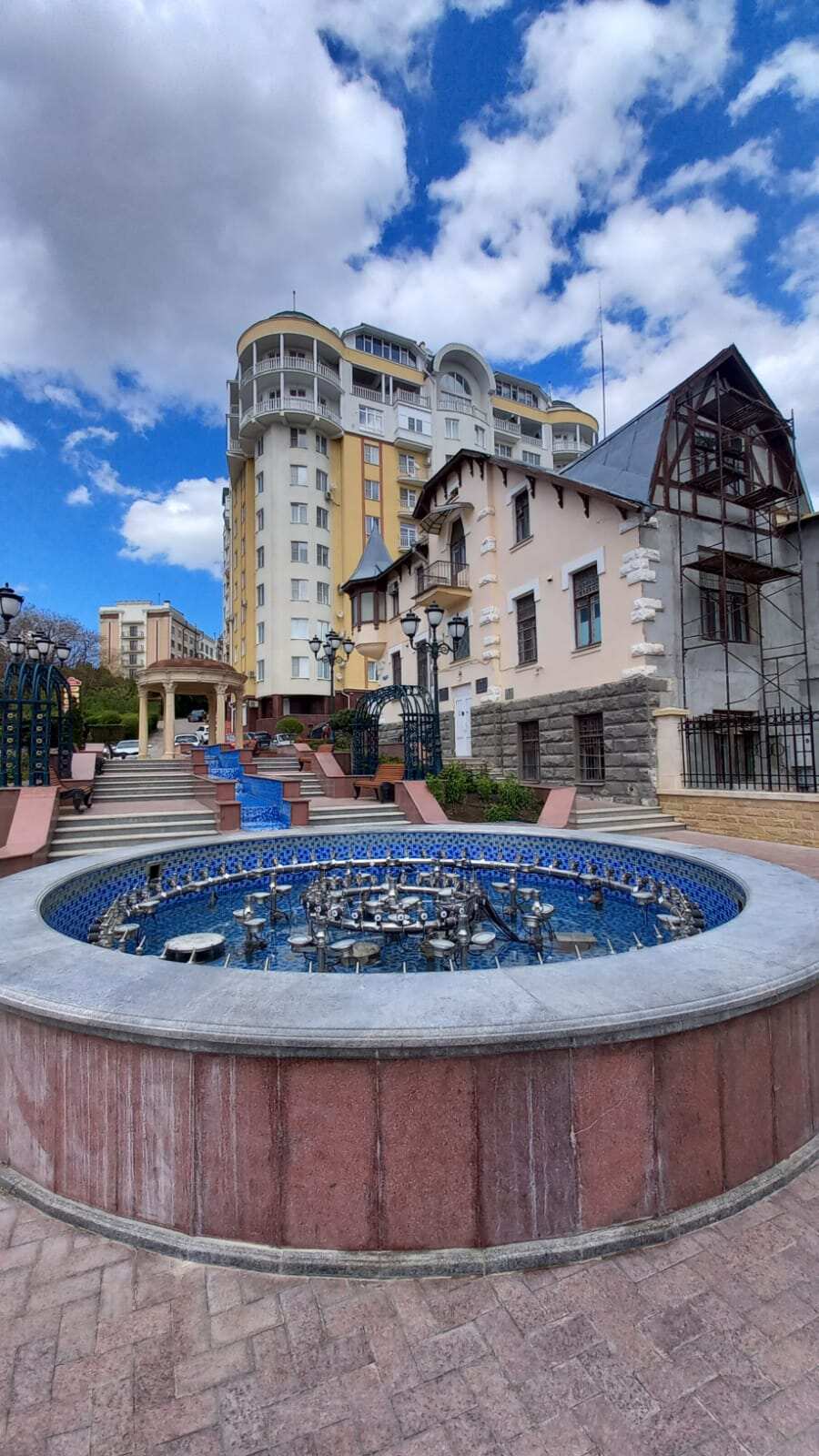 Новой Каскадной лестницы — относительного недавнего архитектурного объекта с цветочными клумбами и фонтанами;