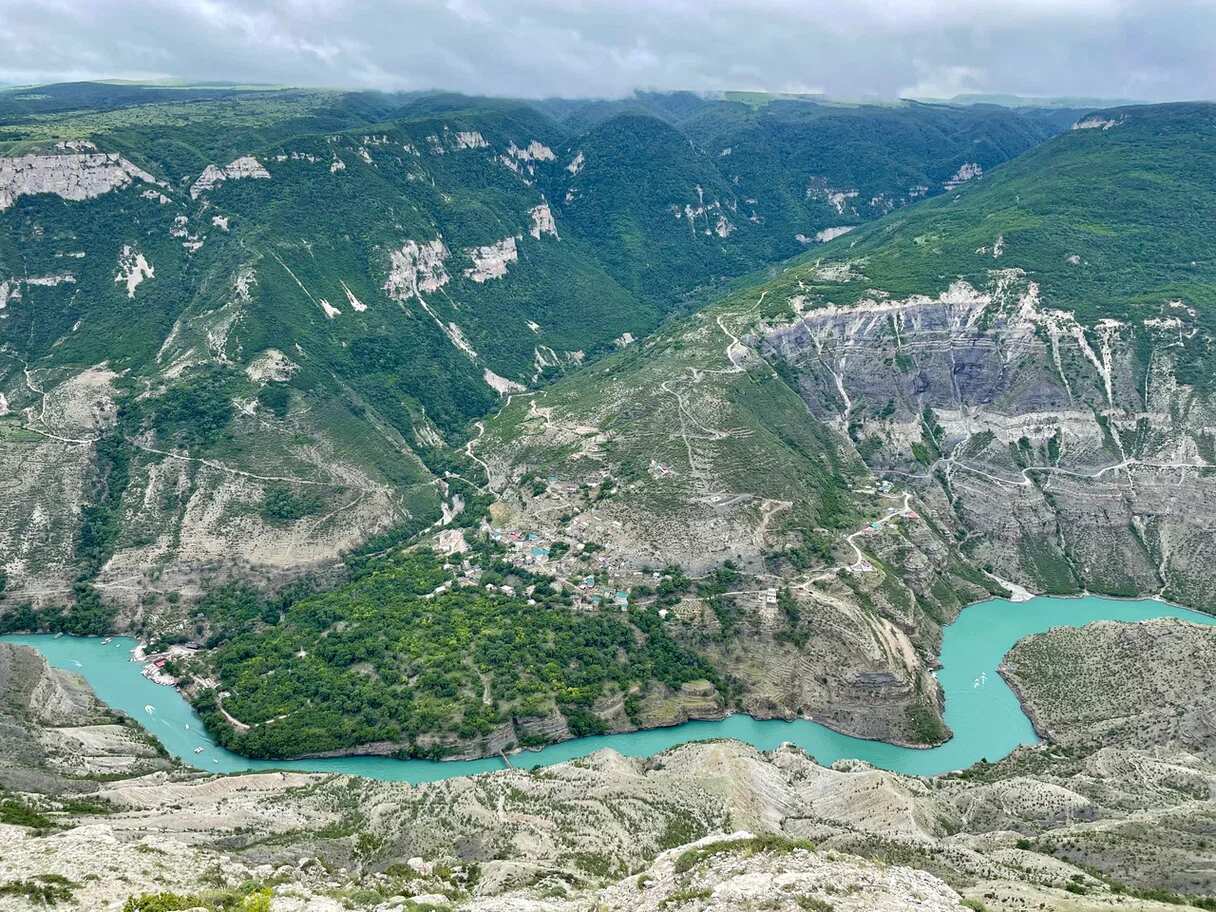 Наше путешествие начнётся со знакомства с Сулакским каньоном — визитной карточкой Дагестана. После полуторачасового переезда мы окажемся на смотровой площадке у Чиркейского водохранилища, расположенной на высоте 1 500 м над уровнем моря. Отсюда открываются захватывающие виды на реку Сулак и окружающие горные хребты.