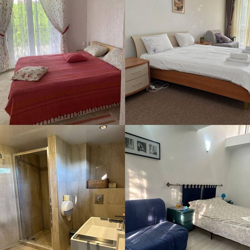 - Проживание на комфортабельной вилле в двухместных номерах со всеми удобствами, на высокой скале прямо на берегу Черного моря (это лучшая локация всей Ольгинки)