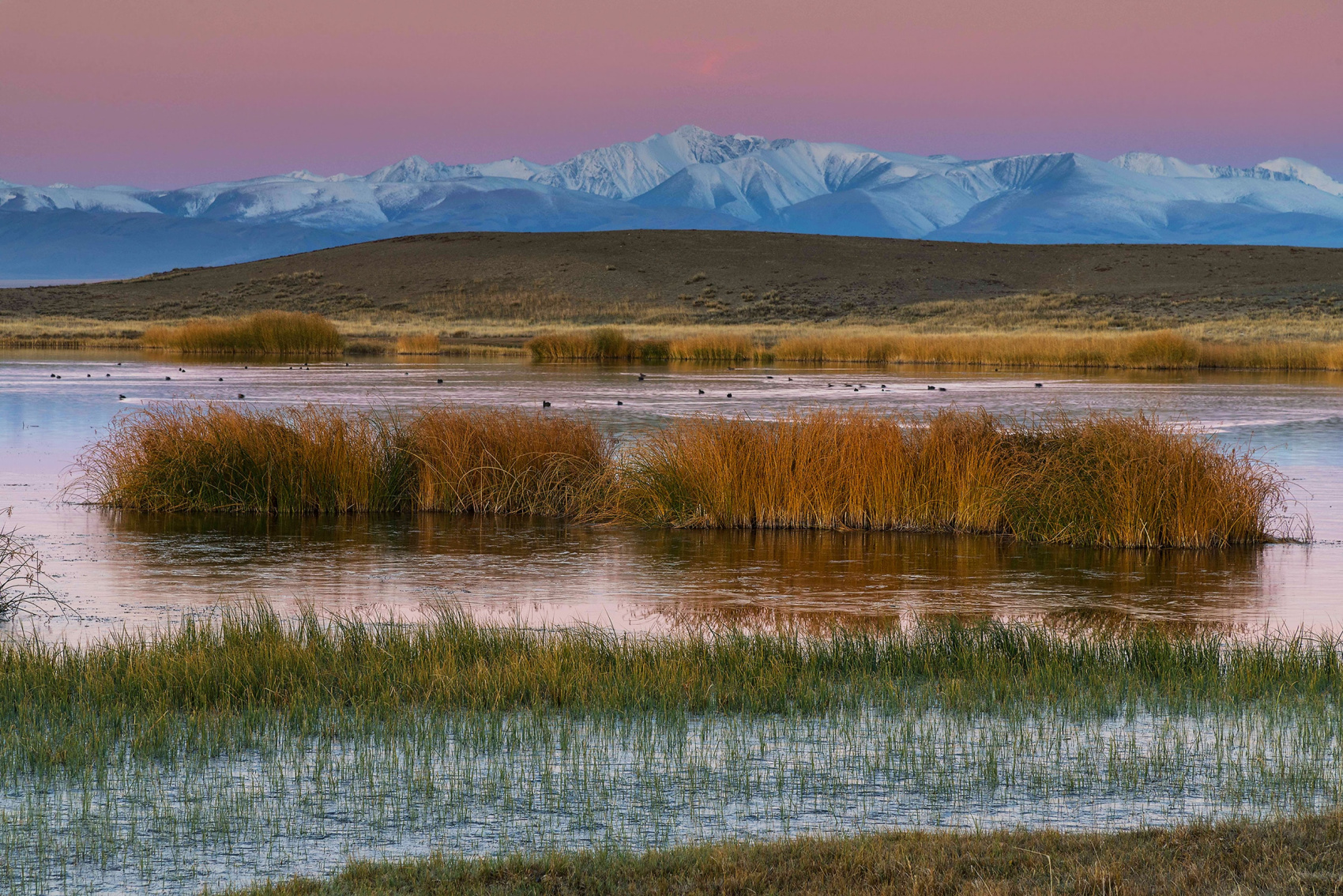 Обед у нас запланирован в с. Кош-Агач. До села Кош-Агач будем ехать через живописную Чуйскую степь. На обратном пути делаем остановку у Гейзерного озера. Озеро уникально и имеет свою хрупкую экосистему, зимой оно не замерзает.