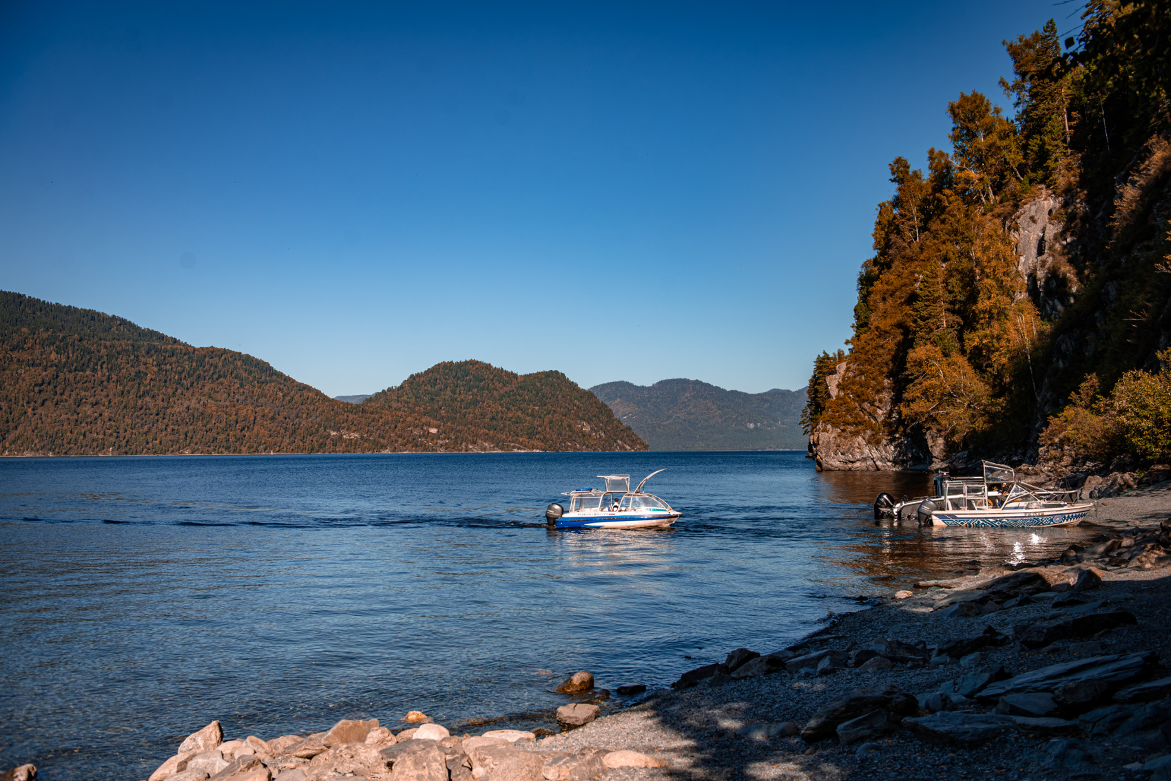 - Катер на Телецком озере;