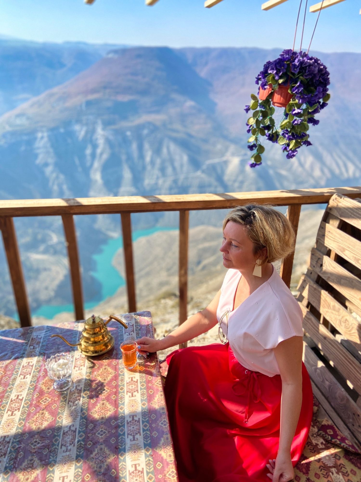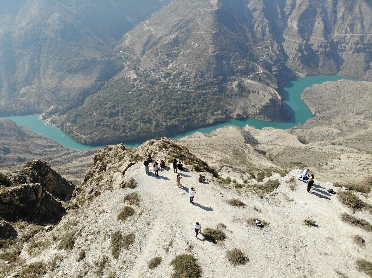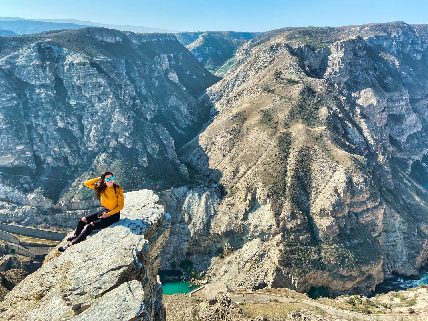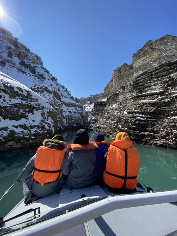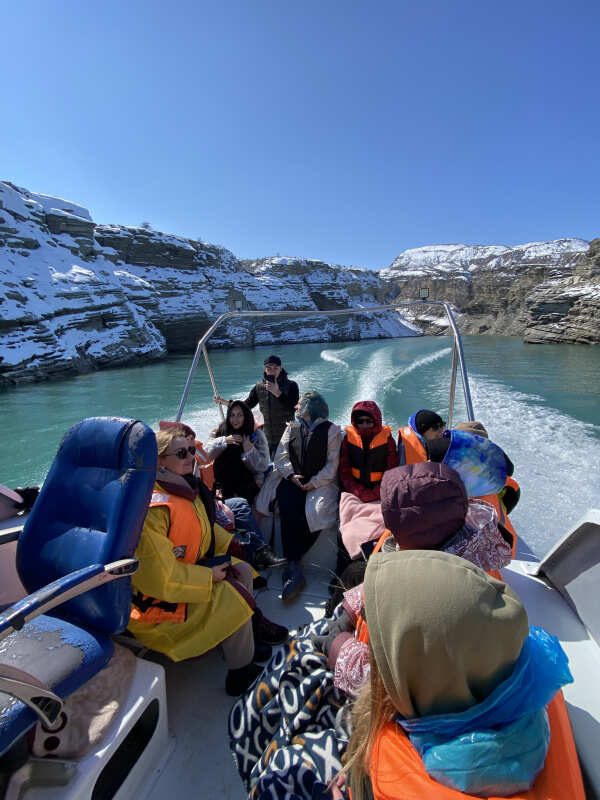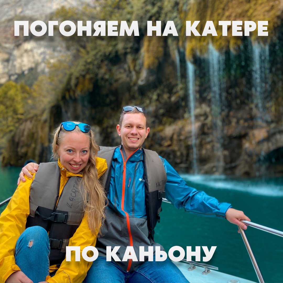 Далее едем смотреть самый глубокий каньон в Европе, в котором протекает река Сулак. Она действительно обладает таким волшебным цветом, как на фотках (которые кстати все - наши, без исключений). Делаем фотографии на дрон и едем кататься на катере!