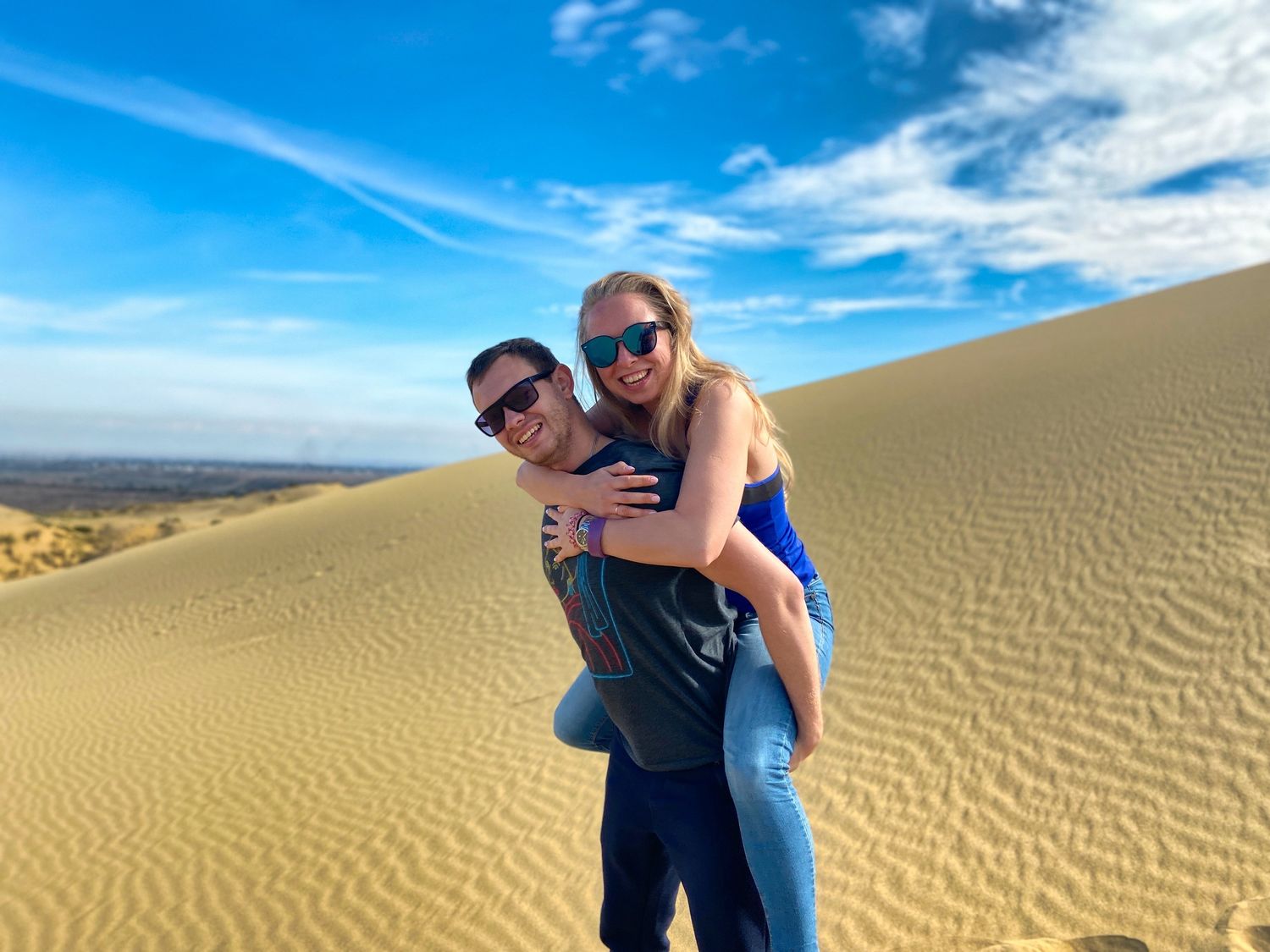Первым делом едем на бархан Сарыкум. Он длинной без малого 12 км, а в ширину почти 4 км. Да, такая пустыня на минималках :) Это второй бархан в мире по величине, больше только в Сахаре.