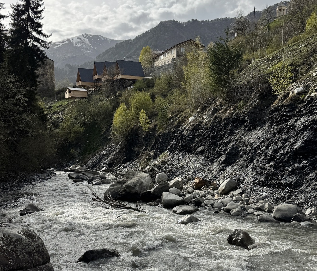 Затем начинается самое настоящее волшебство — мы отправляемся в Местию и сердце Сванетии. Это другой мир: высокие горы, снежные вершины, древние башни, гостевые дома с видом на Кавказ, ледники, водопады и невероятная тишина, которую нарушают только реки и ветер. Сванетия — это то место, где природа ощущается всем телом, а каждый вид будто сошёл с открытки.