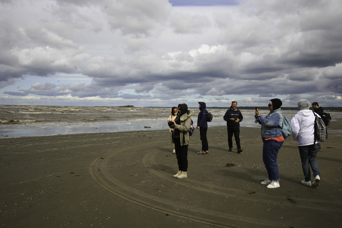 По обнажившемуся во время отлива морскому дну отправляемся на мыс Глубокий. Включаем внимание и наблюдательность, не забываем хорошую оптику. Мыс Глубокий место, где появляются на свет легендарные белые киты Севера - белухи. Здесь находится вышка для наблюдений, где в сезон работают ученые-биологи. В полном соответствии с названием, на мысу сохраняется пригодная для купания глубина даже на максимуме отлива. В то же время мы увидим, как далеко отходит море около самой Пурнемы. Полоска воды остается где-то на горизонте, а на литорали можно увидеть разных морских обитателей: медуз, мелкую рыбешку, морских звезд. Берег здесь очень красив: за невысокими песчаными дюнами простирается хвойный лес с богатым черничником.