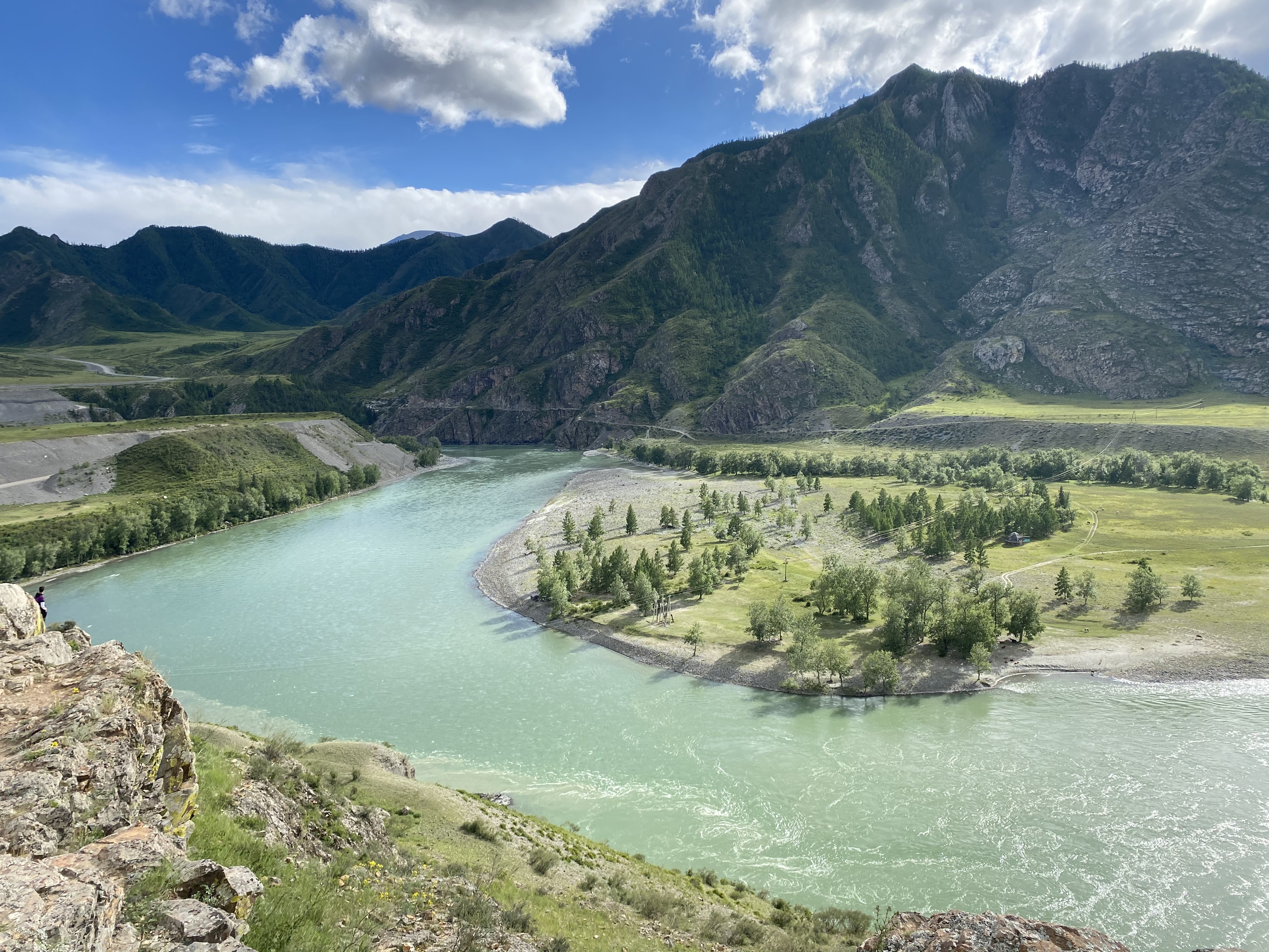 Слияние Чуи и Катуни: остановимся там, где встречаются две могучие реки. Бирюза Катуни против серо‑стальных потоков Чуи — природа создала здесь идеальный контраст (такой эффект увидим, если нам повезет!)