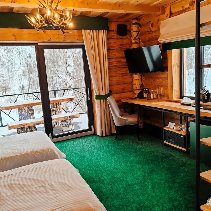 После чего заселяемся в Алтай Пелас Маральник 5*. В тур включено размещение в Шале c видом на парк маралов на второй линии. С доплатой можно разместиться в Шале на первой линии или различных категориях Вилл.
