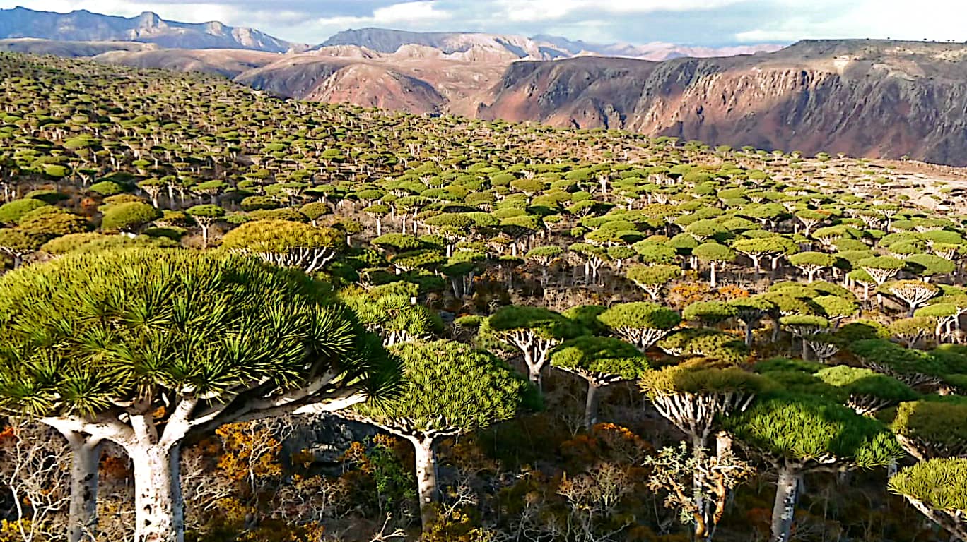 драконовыми деревьями возрастом более 1 000 лет — эти уникальные растения с кронамизонтами стали символом Сокотры. Представьте: эти великаны видели века!