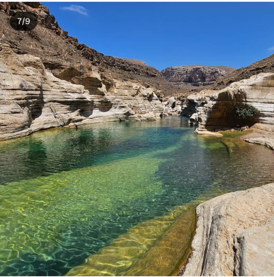 большие бассейны с пресной водой среди скалистых стен каньона;