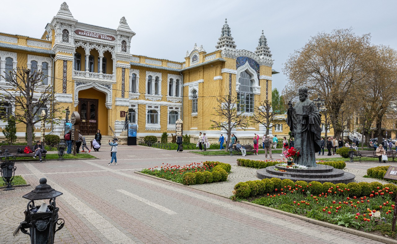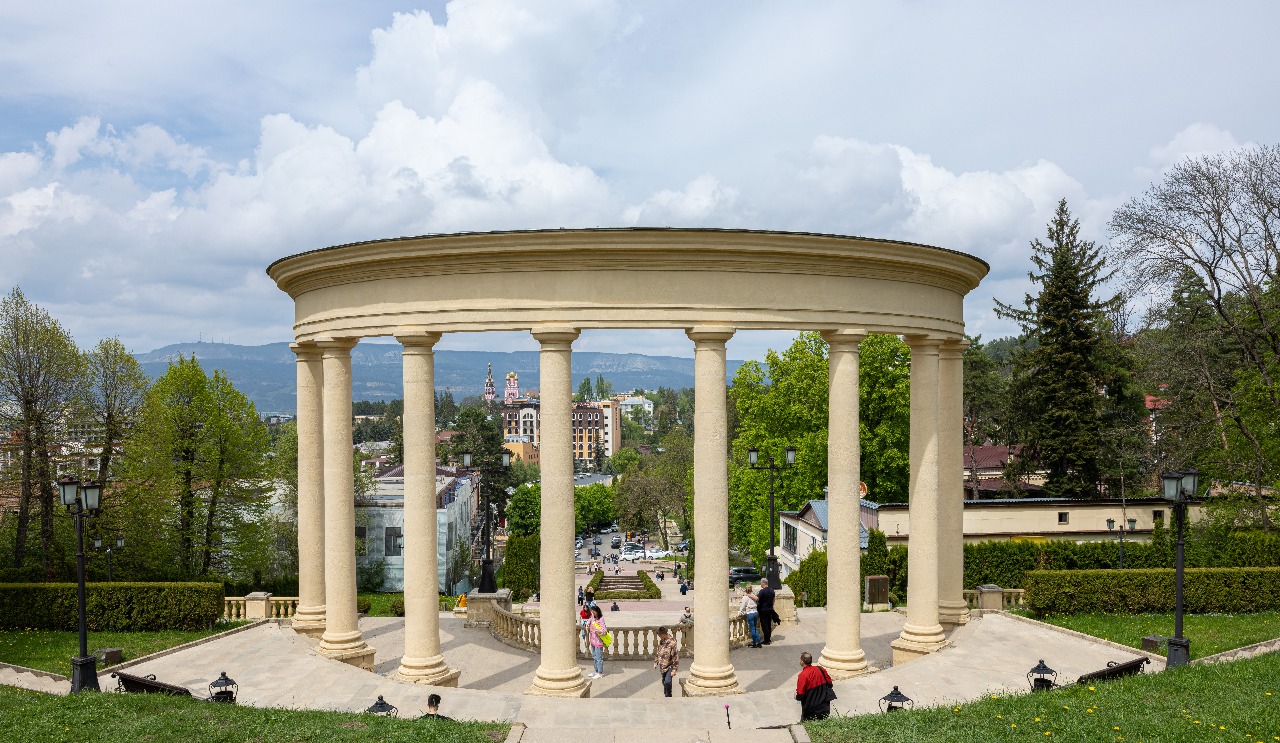 Первым свою историю вам раскроет российской бальнеологии город-курорт Пятигорск - Пять вершин в переводе с тюркского. Среди высоких гор и широких равнин раскинулся красавец Пятигорск! Первый русский бальнеологический курорт и самое модное местечко Империи середины 19 века. Город пяти гор и 40 источников целебной воды, совершенно разной по составу и назначению - куда там карловарской! Город, воспетый поэтами и овеянный драматическими историями. Известный парками, дворцами, судьбоносными событиями и свиданиями из романов, и уютнейшими улочками И знаменитый почитателями и героями - от Лермонтова до Кисы Воробьянинова! Маршрут проходит по старейшей части города, где у вас есть возможность увидеть карстовое явление озеро внутри горы Машук. Озеро Провал одна из самых впечатляющих природных достопримечательностей Пятигорска. На горе Горячей с Китайской пагоды открывается необыкновенная панорама центральной части курорта. Далее вас ждёт символ Кавминвод скульптура Орёл, возвышающаяся над Курортным парком Цветник, где разностилевые постройки представляют периоды развития курорта и являются образцами провинциальной архитектуры юга России. В Центральной питьевой галерее вы сможете попробовать три типа минеральной воды щелочную, углекислую и сероводородную. В 1793 году у подножия горы Машук были обнаружены выходы минеральных вод, благодаря которым впоследствии возник город-курорт Пятигорск. Высота горы Машук составляет 993 метра над уровнем моря. Вам откроется захватывающие дух панорамы не только Пятигорска и великолепных окрестностей гор Бештау, Юца, Джуца, в ясную погоду вы увидите серебряную цепочку заснеженных вершин Большого Кавказского хребта с величественным двуглавым Эльбрусом.