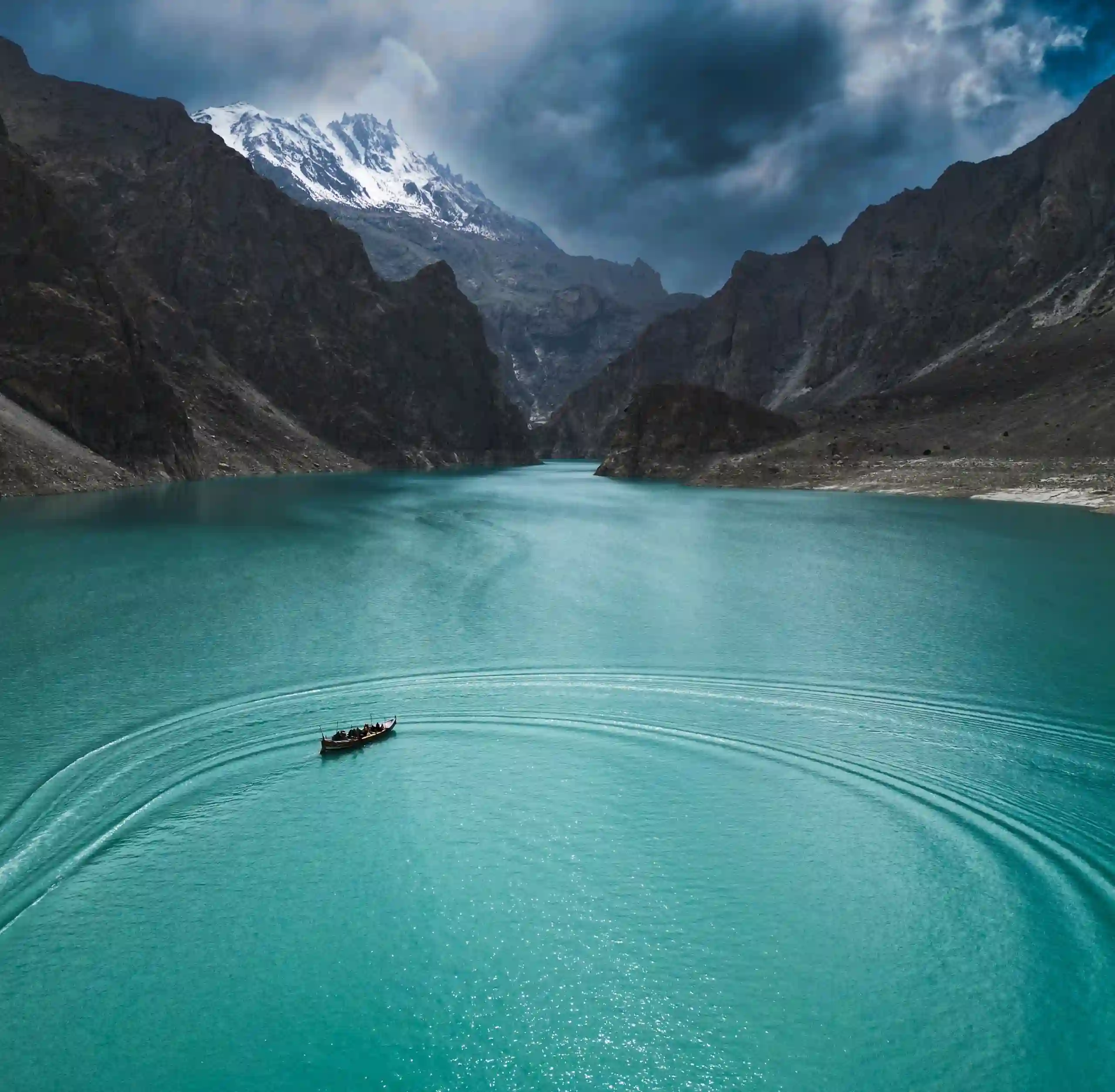 Первая остановка красивейшее изумрудное озеро Аттабад, где мы покатаемся на лодке.