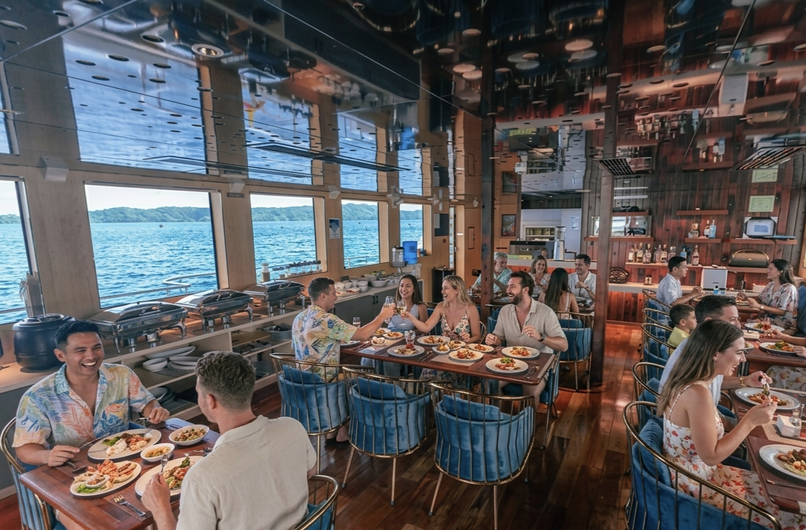Общие пространства включают ресторан и бар, солнечную палубу с джакузи, зоны отдыха и мягкие диваны с видом на океан. Полный пансион обеспечивает трёхразовое питание, закуски и напитки. День на борту выстроен так, чтобы после насыщенных погружений у вас оставалось ощущение комфорта, а не усталости.