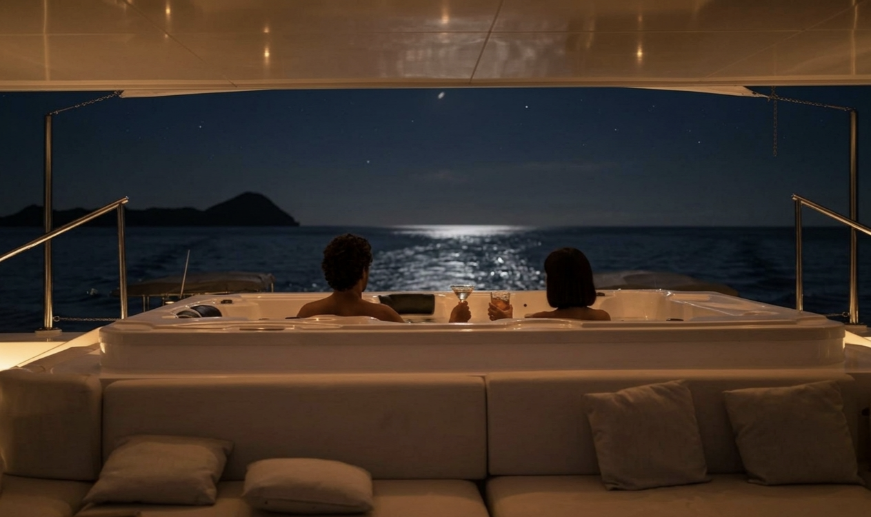 Вечером — тёплый душ, лёгкий ветер на палубе, разговоры за ужином и звёзды, которые в открытом море кажутся ближе.