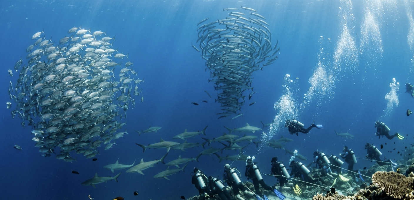 Вы фиксируетесь на рифе, и перед вами разворачивается настоящий спектакль. Вода плотная от движения, свет играет на глубине, и каждая минута наполнена концентрацией.