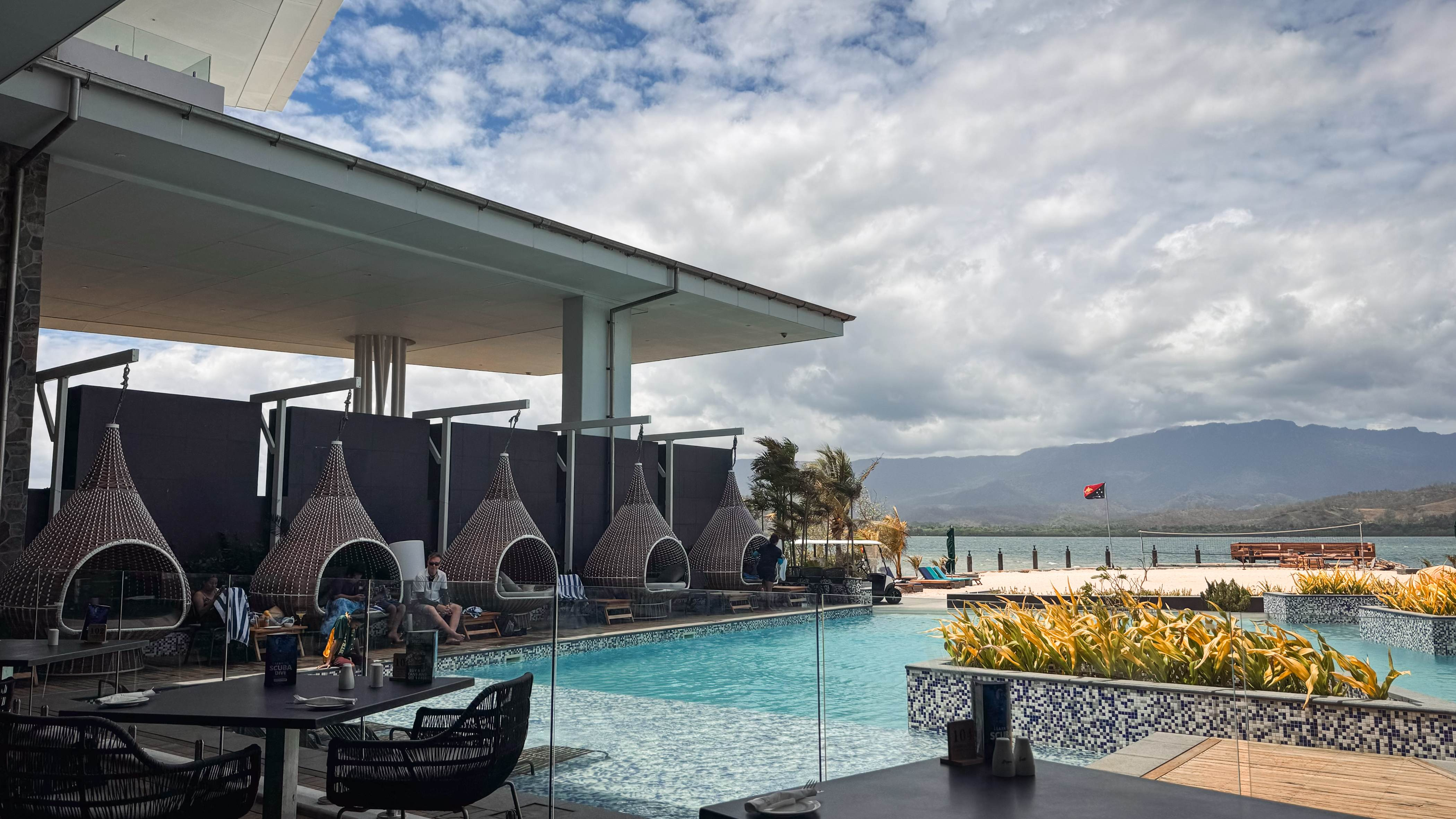 Роскошная территория резорта прекрасное место для крутых фотографий и просто насладиться последний днем в Папуа! Вечером возвращаемся в отель в Порт-Морсби.