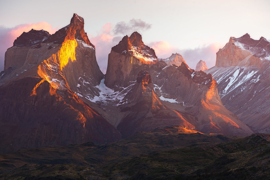 Ранним утром выезжаем из Пуэрто-Наталеса в направлении заповедника Торрес-дель-Пайне, на территории которого проходит один из лучших пеших маршрутов мира. Фантастические горы, невероятных цветов озера, леса, голубые ледники, богатые флора и фауна делают этот трек одним из самых живописных в Южной Америке. В нашей авторской версии этого маршрута мы посетим все самые интересные локации парка и увидим невероятное количество красивых видов.В первый день мы посетим все ключевые локации вдоль реки Пайне. Вас ждут бирюзовые озера, живописные лесе, бескрайние поля с пасущимися табунами лошадей, суровые заснеженные горы с ледниками, каскадные водопады и многое-многое другое. Это будет длинный и очень насыщенный видами день. Мы проедем большую часть парка Торрес дель Пайне и увидим все самые интересные места заповедника.