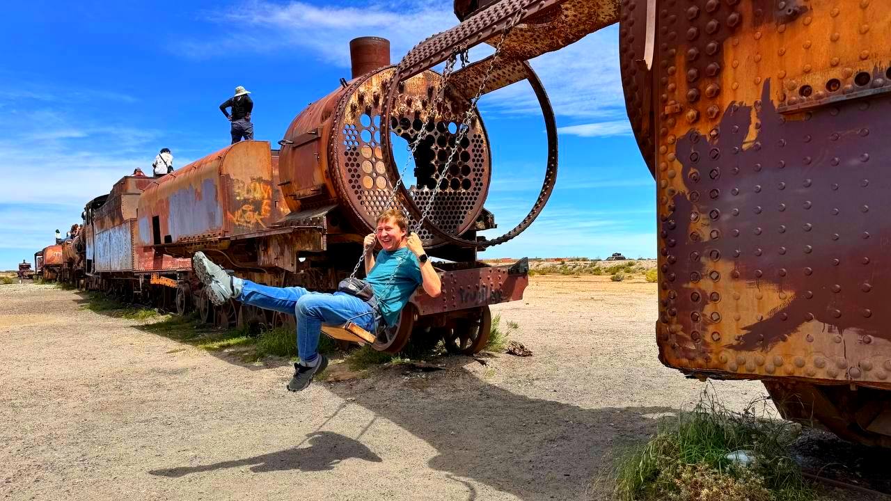 Сегодня мы отправимся в увлекательное путешествие на джипах в самое безжизненное место планеты. Фотографы со всего мира приезжают сюда, чтобы запечатлеть уникальные пейзажи: древние вулканы, стаи розовых фламинго, бродящие стада диких лам, гигантские кактусы, изменяющие свой цвет озера, магические поля гейзеров. В 2007 году путеводитель Rough Guides включил Солончак Уюни в список 25 чудес света. Солончак занимает площадь, примерно равную семи Санкт-Петербургам или половине Израиля. Общие запасы соли оцениваются в 10 миллиардов тонн! Нам будет предоставлена возможность наблюдать за процессом добычи соли и купить местные сувениры. Обязательно к посещению крупнейшее кладбище паровозов в мире. Заброшенные паровозы на фоне солончака создают уникальные фотографии.