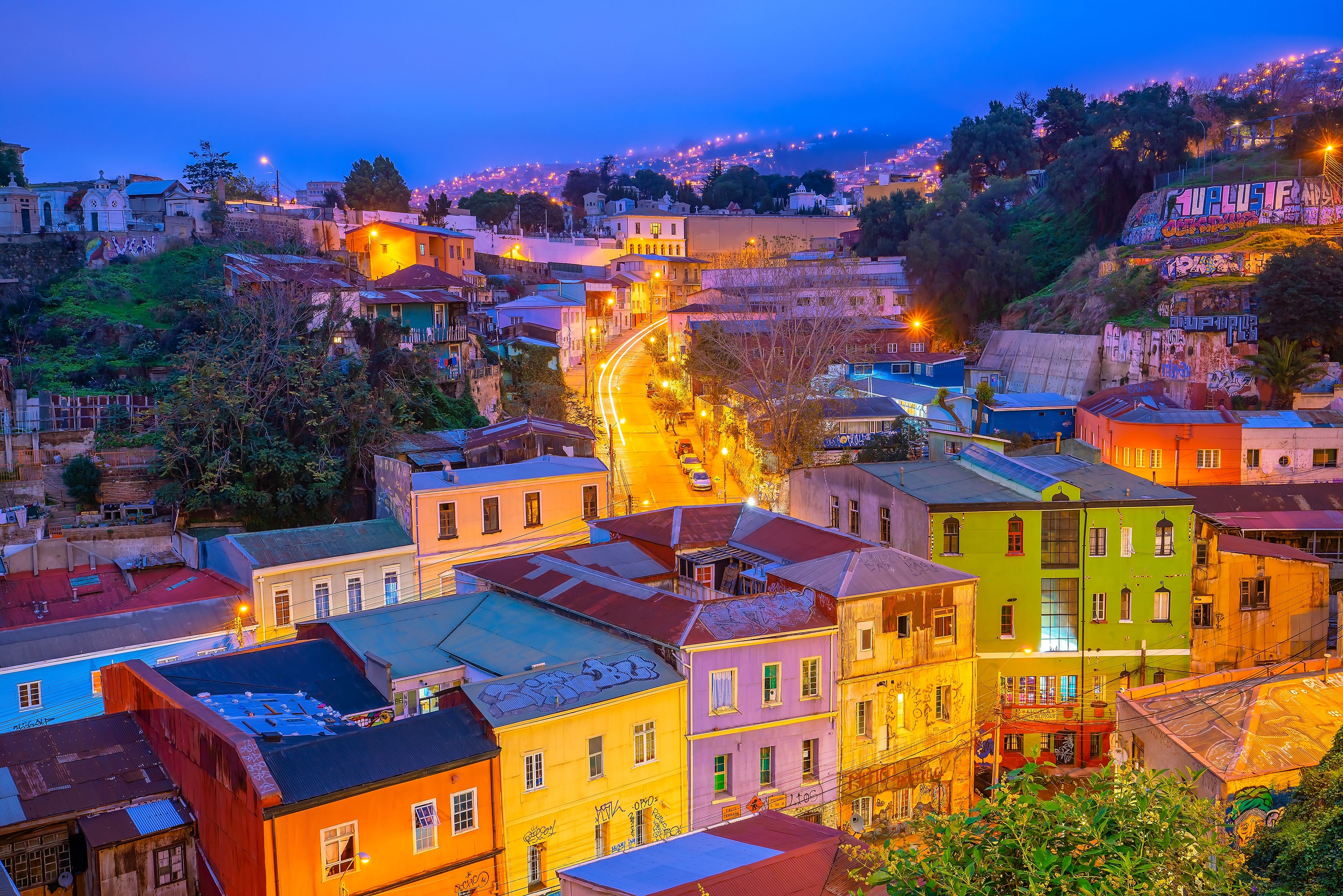 Далее дорога спускается к Тихому океану и перед нами открывается Вальпараисо город, который поэт Пабло Неруда назвал стоящим вверх ногами. Поднимаемся на одном из старинных фуникулёров, чтобы начать прогулку по лабиринту разноцветных домов, лестниц и бесконечных муралов. Каждый переулок превращён в галерею под открытым небом. Мы заходим на смотровые площадки Пассео-Хервасони и Пассео-Аткинсон, любуемся панорамой залива, заглядываем в мастерские местных художников.