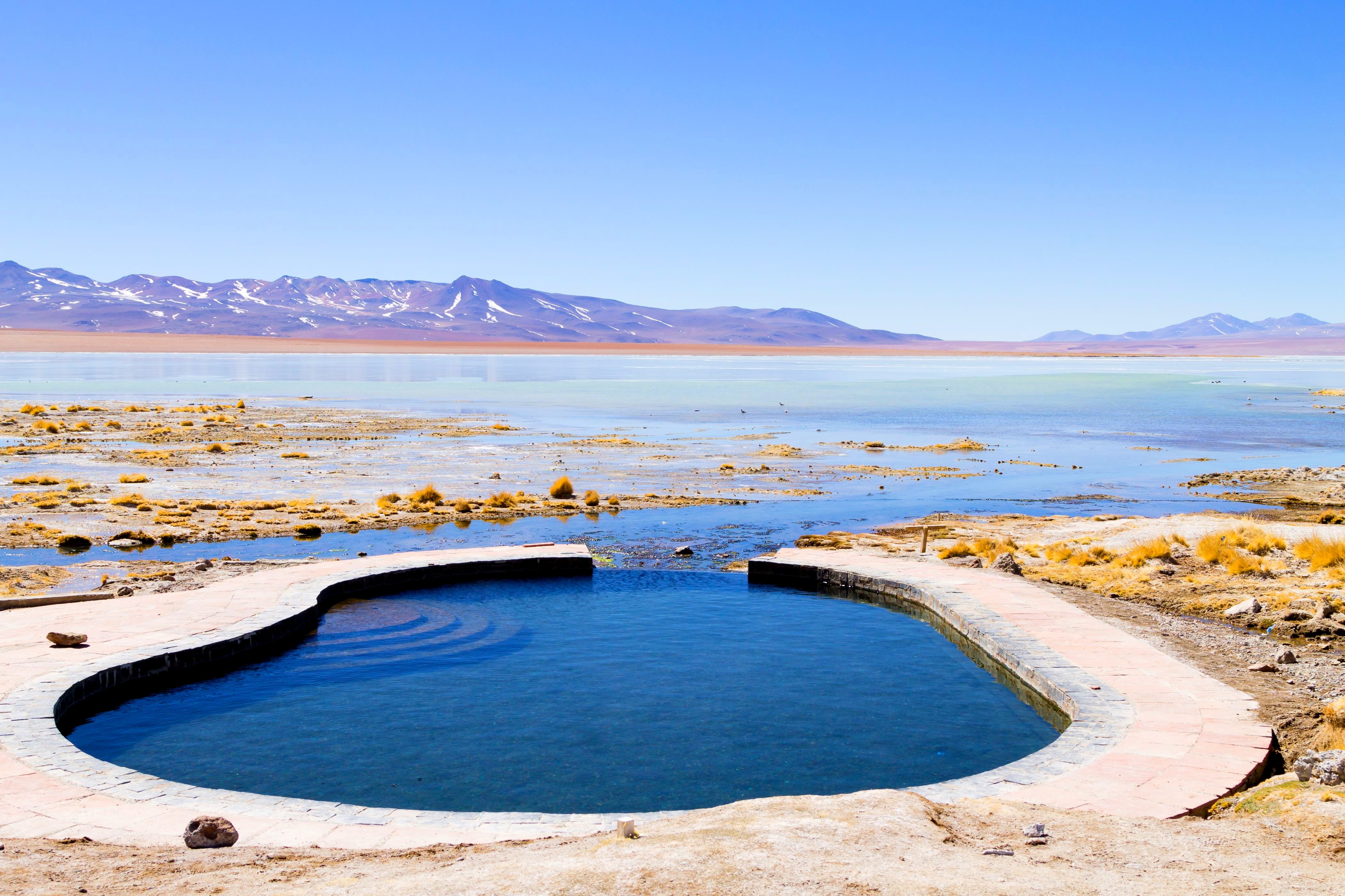 Далее держим путь к лагуне Верде, Вода в этой лагуне изумрудно-зелёного цвета. В озере растворена почти половина таблицы Менделеева. Заночуем в гастхаусе (размещение 4х местное). Рядом с нами расположен горячие термальные источники, в которых мы сможем искупаться после насыщенного дня и полюбоваться звездным небом. Температура воды в источниках превышает 40 градусов. Это непередаваемые ощущения, которые запомнятся на всю жизнь.