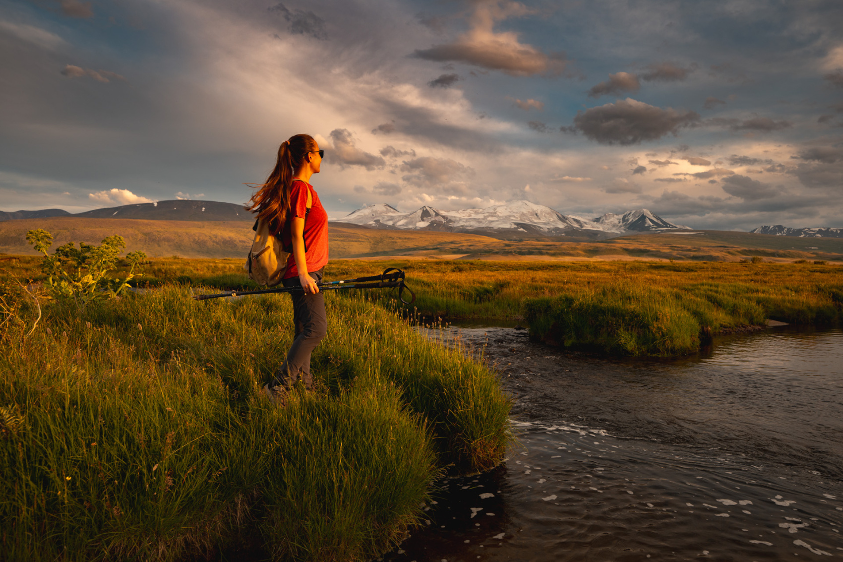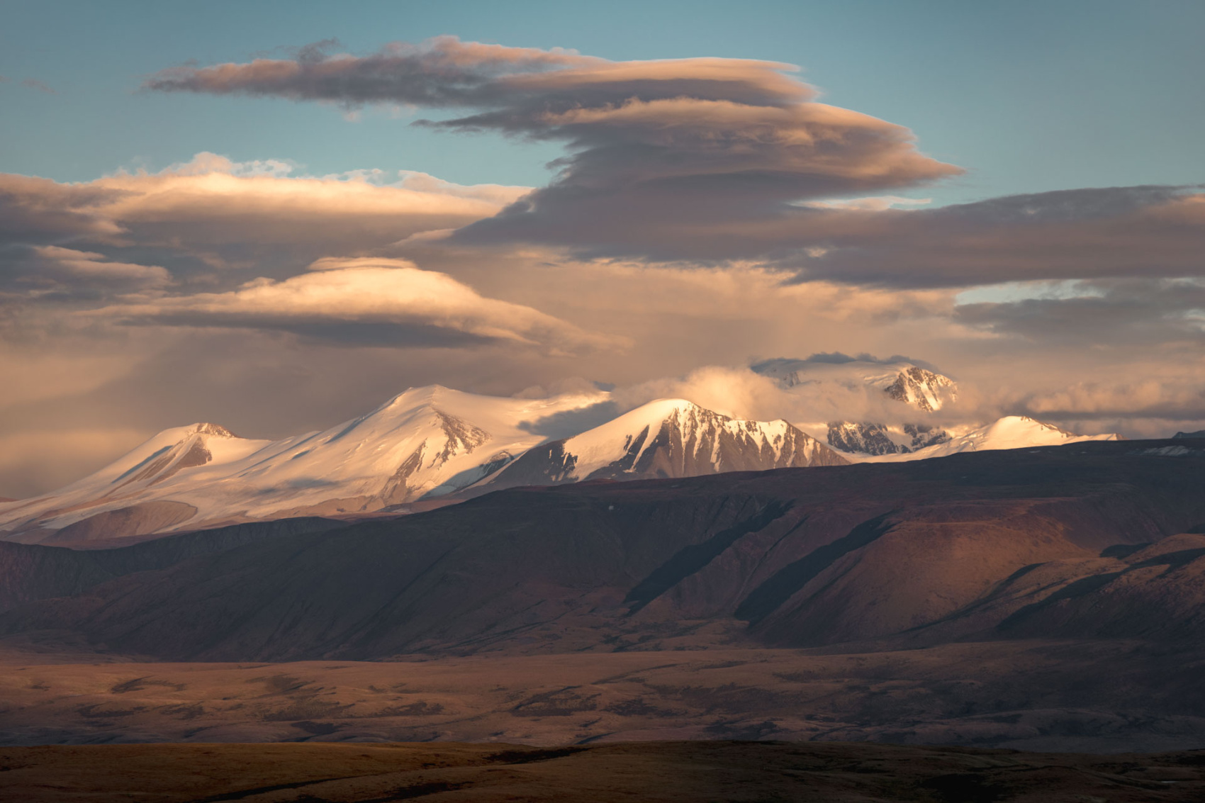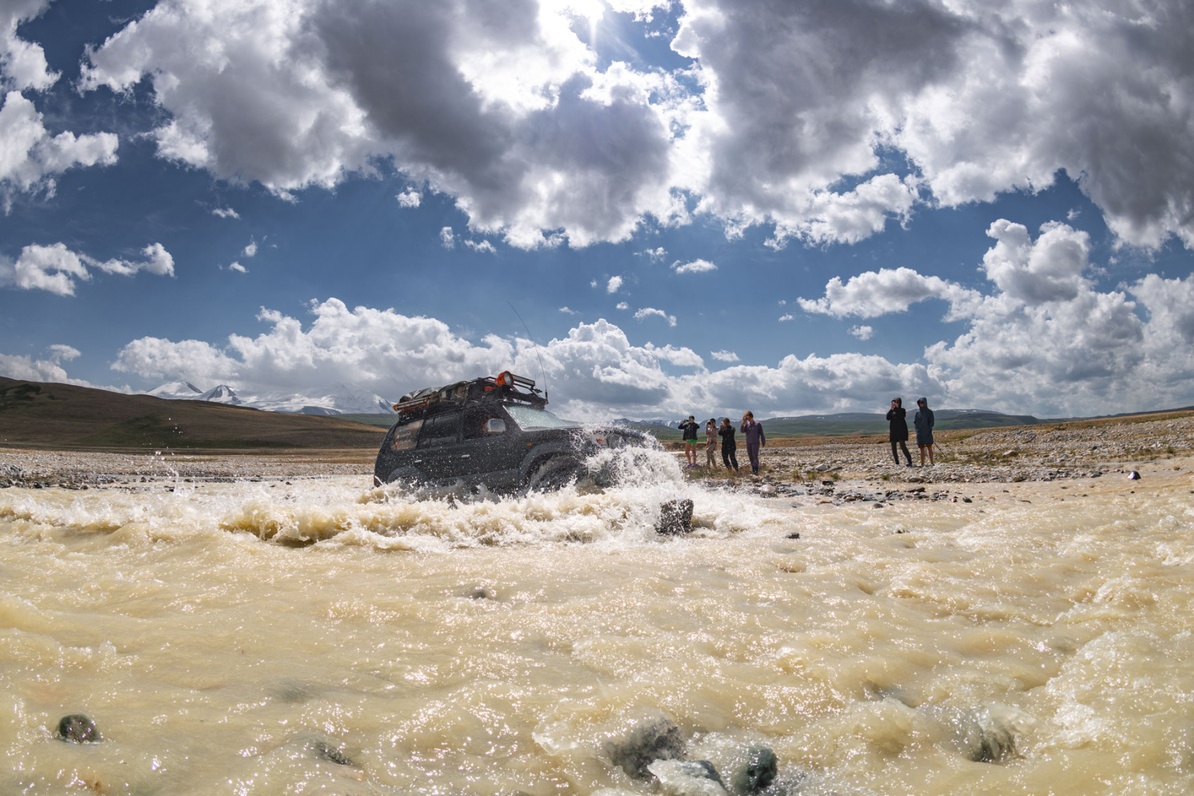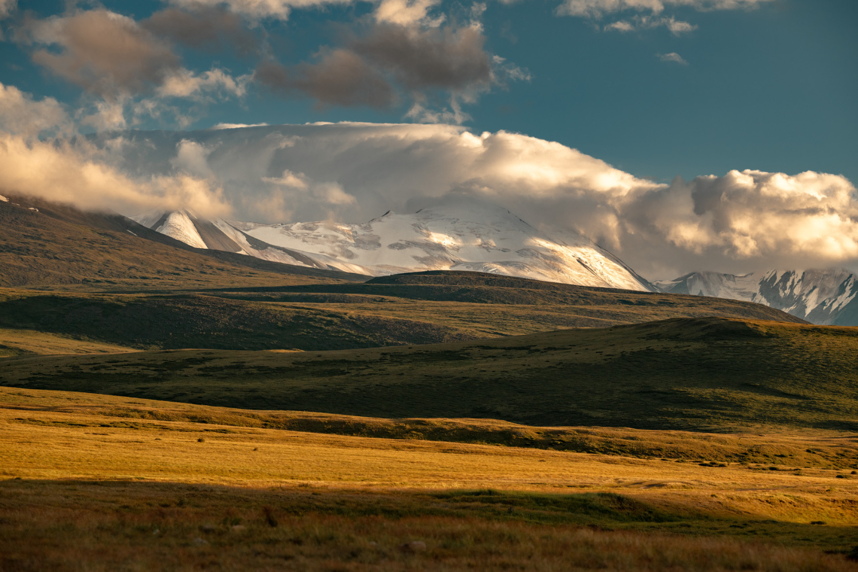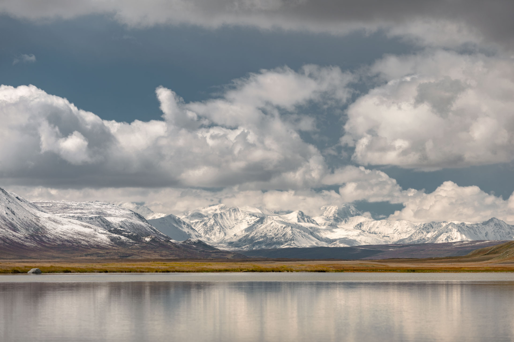 Сегодня мы заходим на само плато Укок через Джумалиские ключи и перевал Тёплый ключ (2900м), где всё еще лежит снег. Повторно проходим приграничный контроль и разбиваем лагерь на видовой точке у реки Аргамджи с видами на горный массив Табын-Богдо-Ола. С сегодняшнего дня мы будем наслаждаться уединением и видами на вторую вершину Алтая, гору Найрамдал или Куйтен-Уул (4374м).