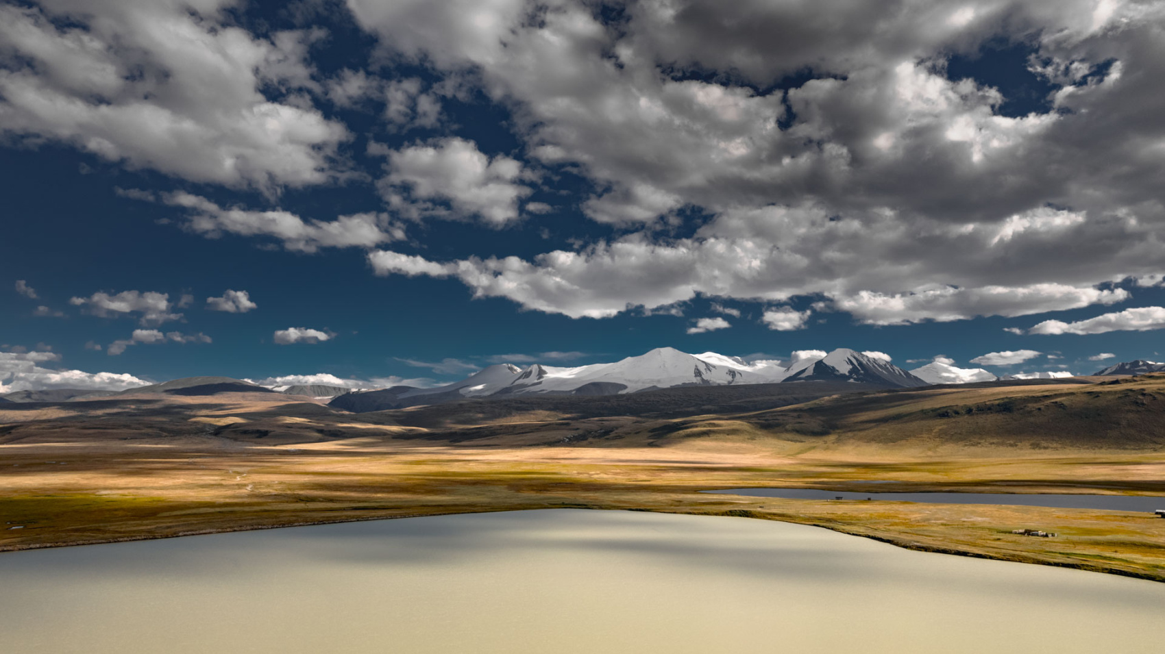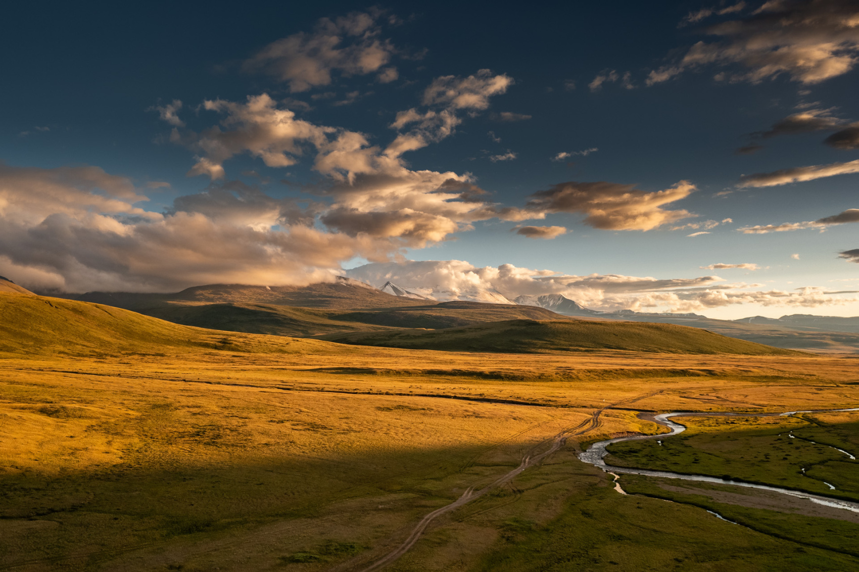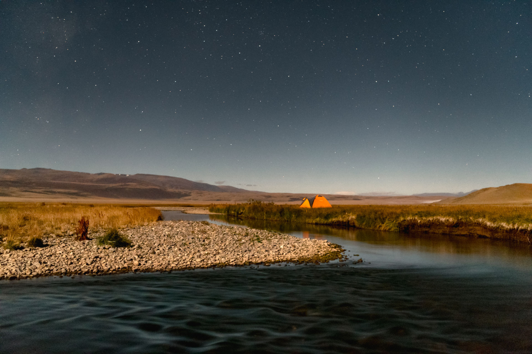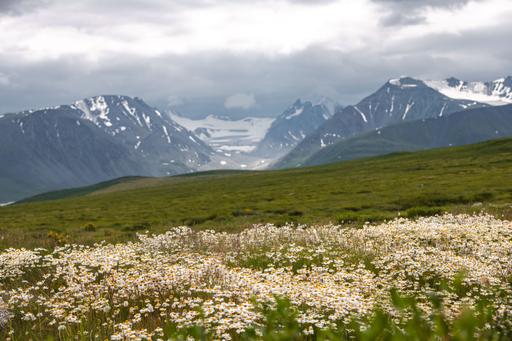 Сегодня мы заходим на само плато Укок через Джумалиские ключи и перевал Тёплый ключ (2900м), где всё еще лежит снег. Повторно проходим приграничный контроль и разбиваем лагерь на видовой точке у реки Аргамджи с видами на горный массив Табын-Богдо-Ола. С сегодняшнего дня мы будем наслаждаться уединением и видами на вторую вершину Алтая, гору Найрамдал или Куйтен-Уул (4374м).