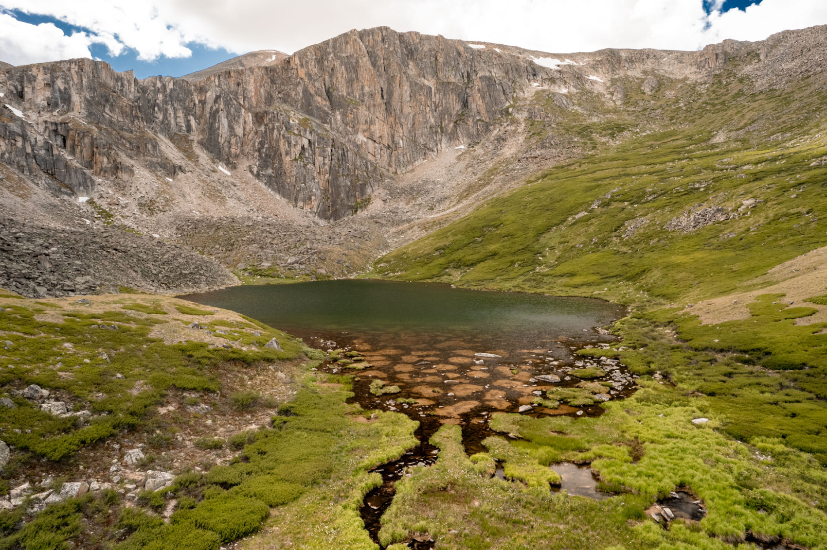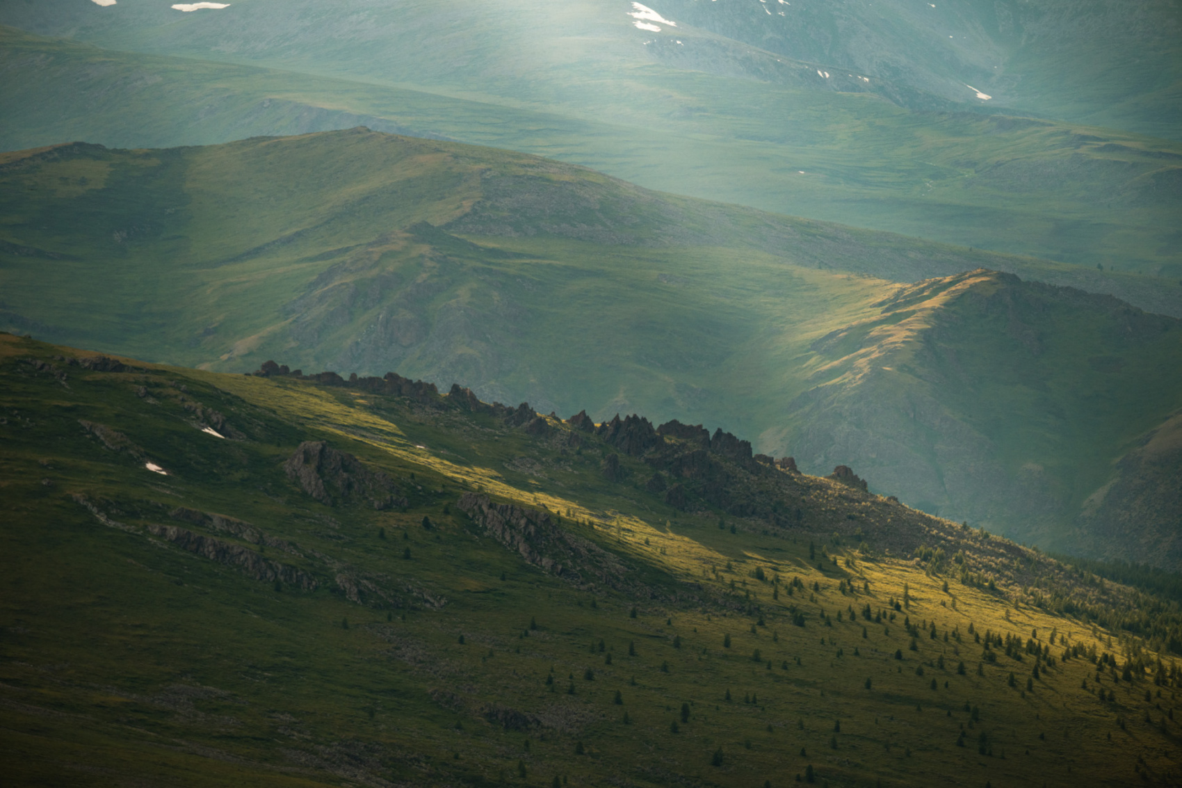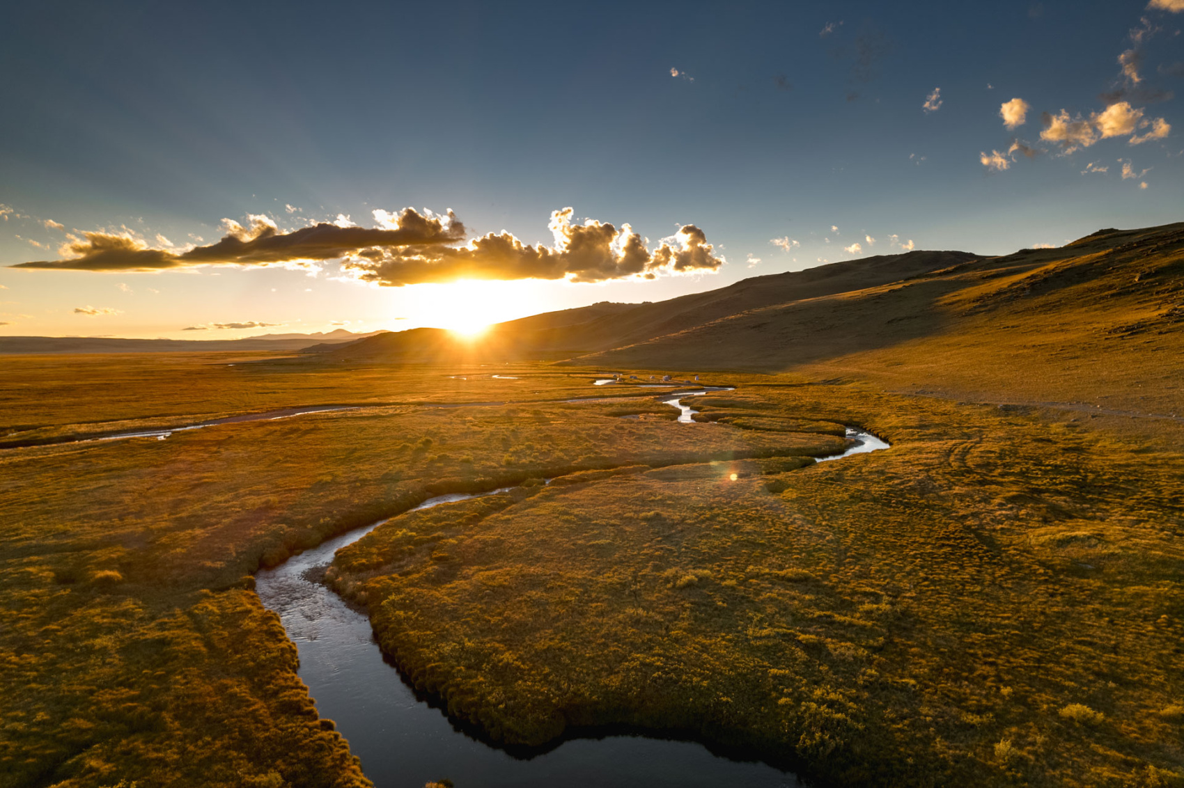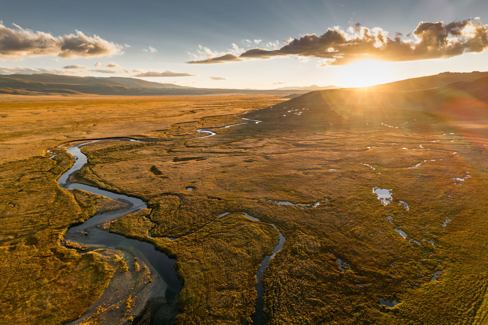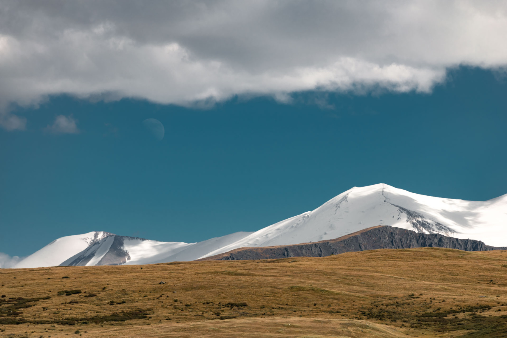 Сегодня мы заходим на само плато Укок через Джумалиские ключи и перевал Тёплый ключ (2900м), где всё еще лежит снег. Повторно проходим приграничный контроль и разбиваем лагерь на видовой точке у реки Аргамджи с видами на горный массив Табын-Богдо-Ола. С сегодняшнего дня мы будем наслаждаться уединением и видами на вторую вершину Алтая, гору Найрамдал или Куйтен-Уул (4374м).
