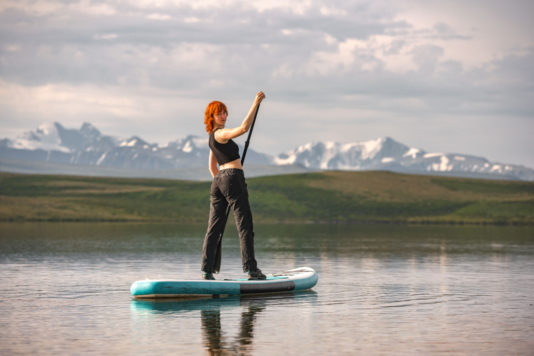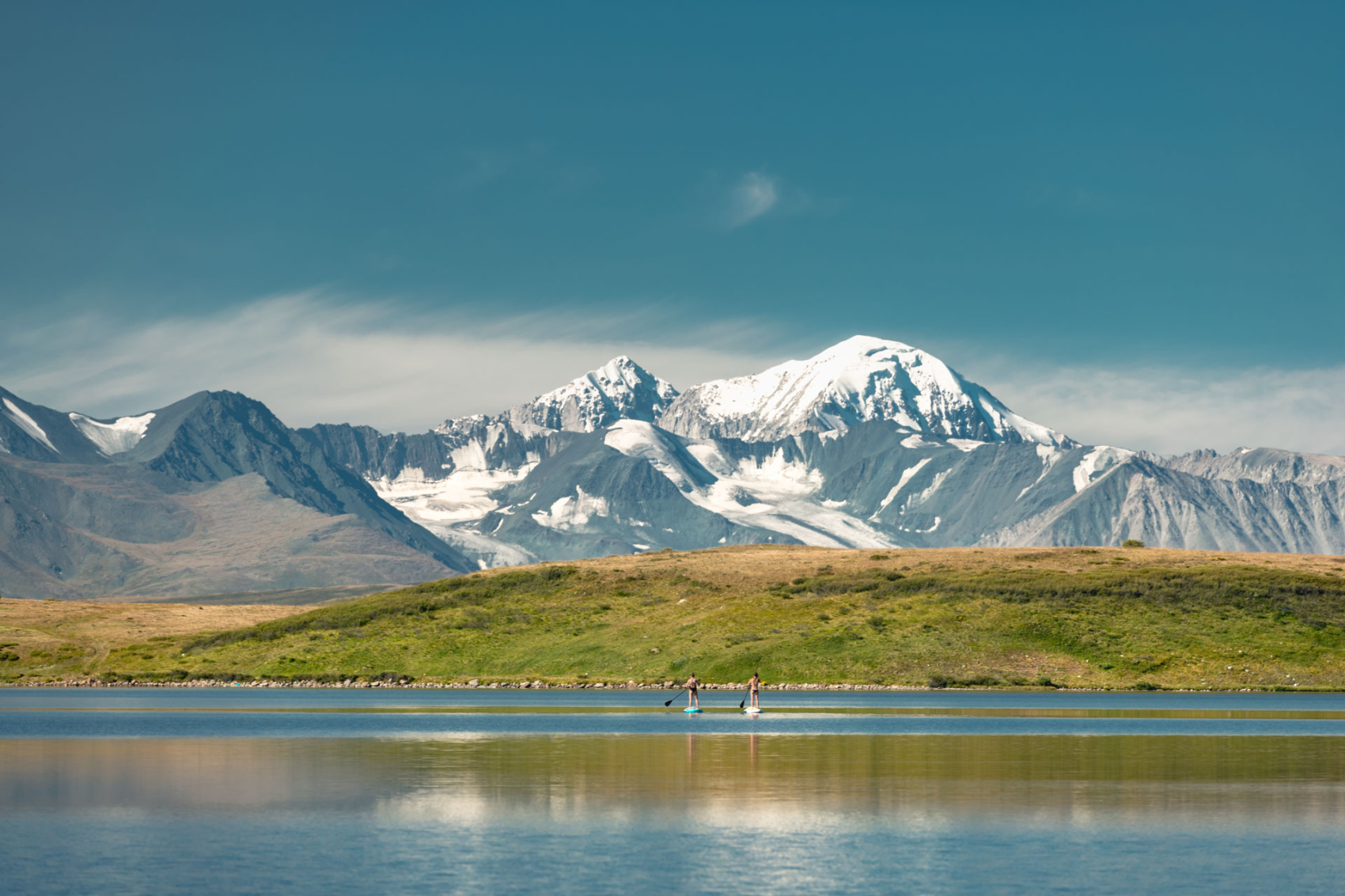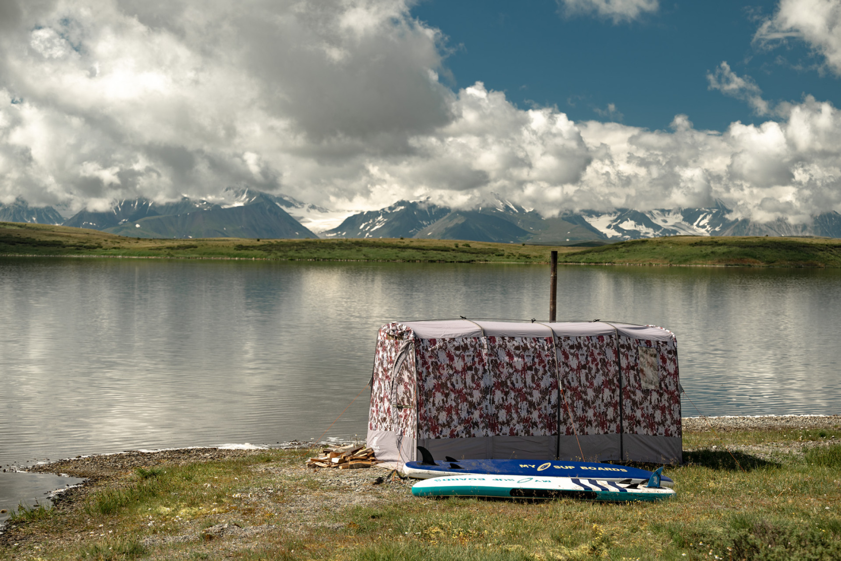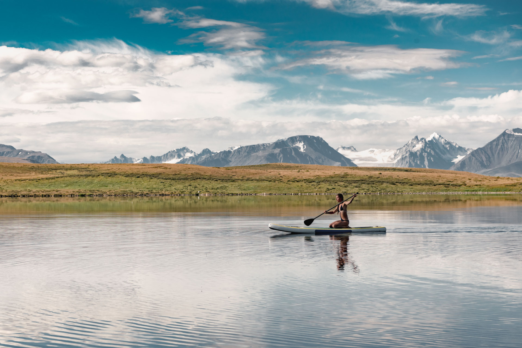 День-релакс. Прогулки на сапах, заброска на смотровую точку и радиальный выход на высоту 2900м с панорамным видом на плато Укок, Южно-Чуйских хребет, Сайлюгемский хребет, гору Белуху и долину реки Аргут. После спуска топим баню, купаемся в озере.