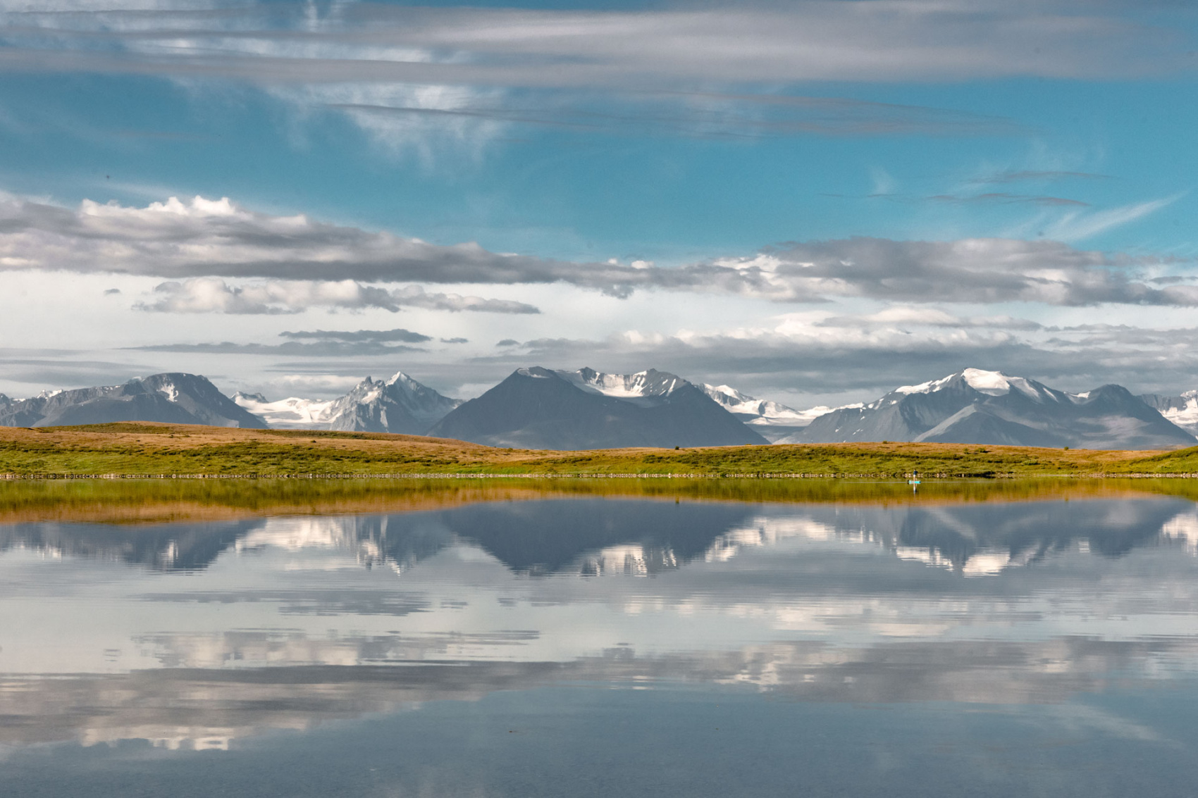 Переезд к озерам Кальджин-Коль и Кальджин-Коль-Бас через почти всё плато Укок. Попутно посещаем озеро Гусиное, реку Аргут (Ак-Алаха), место захоронения Принцессы Укока. Стоянка на высоте около 2500 метров над уровнем моря. Отсюда открывается панорама на Сайлюгемский хребет со всеми его вершинами.