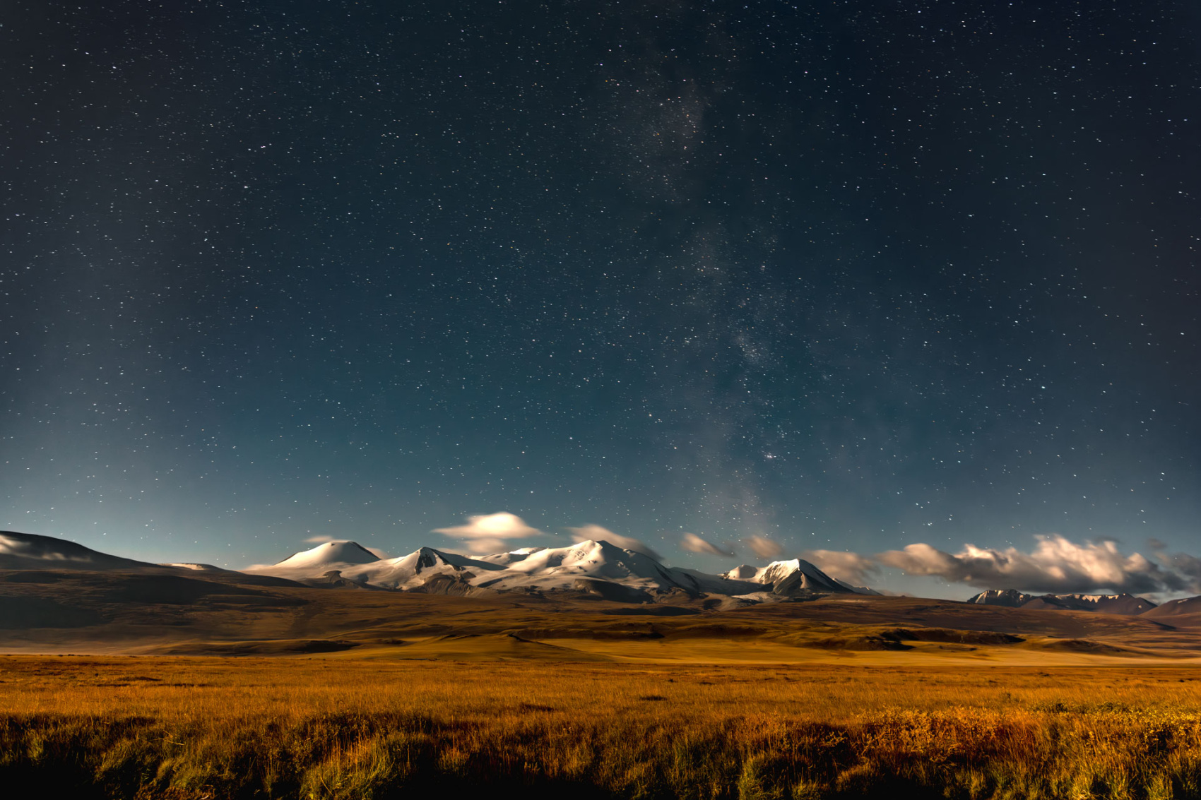 Ночуем мы в уединённом круглом домике в Курайской степи с видами на снежные вершины Алтая. Баня.