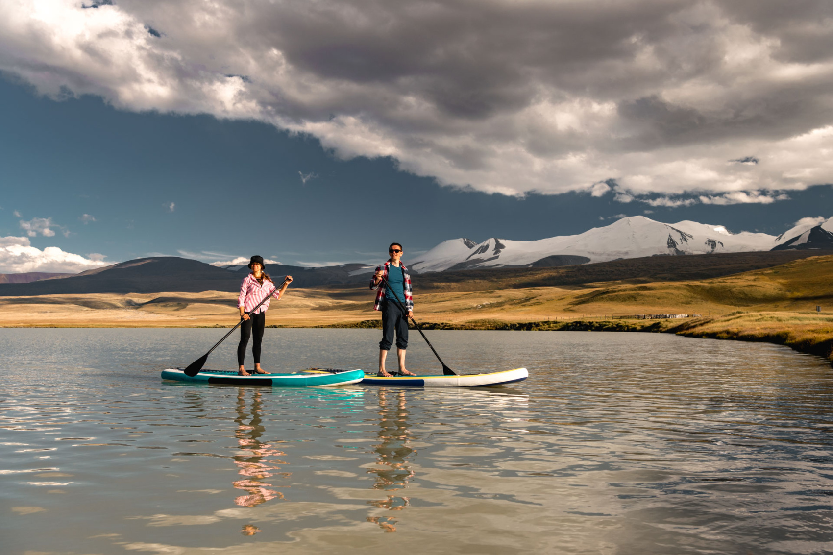 Завтрак, сбор и начало пути назад. Попутно заезжаем на озеро Гусиное для фотосессии на сапах. Возвращение к перевалу Тёплый ключ. Ночевка у подножья горы Табын-Богдо-Ола на видовой точке. Финальный вечер на Плато.