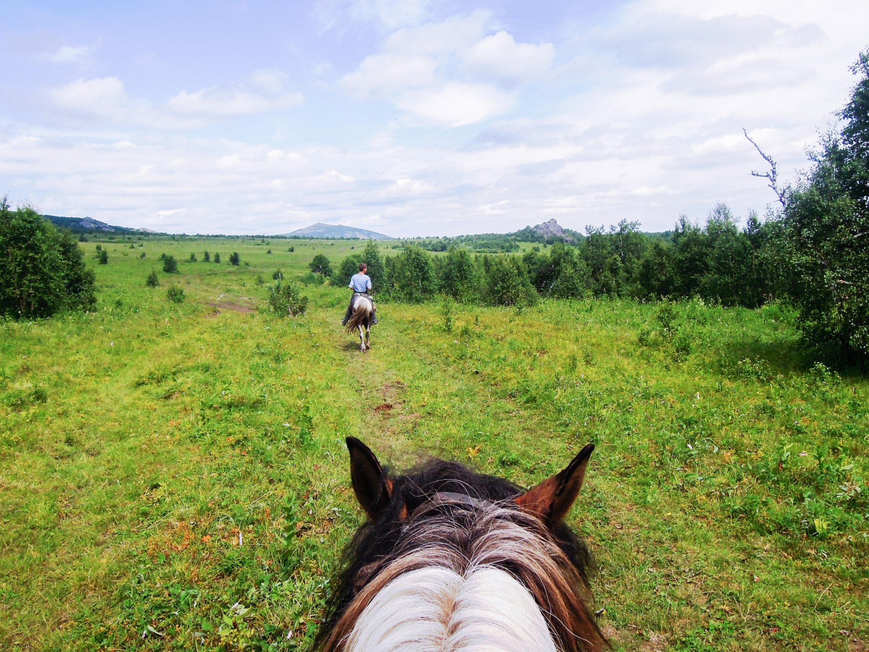 Конный выезд (~5 часов) вдоль границы Башкирского государственного заповедника. Особенность нашего тура заключается в том, что Вы полностью вовлечены в процесс подготовки лошадей к прогулке. Научитесь «ловить» лошадь, под руководством опытного инструктора сами оседлаете коня. Маршрут проходит шагом по живописной местности с обзором хребтов среднего и южного Крака с сосновыми, сосново-берёзовыми и лиственничными лесами. Выезд рассчитан ~ на 5 часов (зависит от погодных условий и подготовленности группы), предполагается большой переезд и длительное нахождение на открытом воздухе, поэтому внимательно отнеситесь к подбору одежды и обуви.