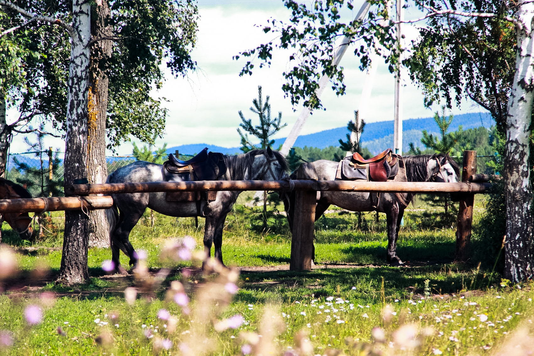 Выносливые и добродушные лошади провезут туристов сквозь густые заросли тайги, богатой грибами и ягодами, по обширным полянам, наполненным упоительным ароматом разнотравья, через чистейшие горные ручьи и речки.