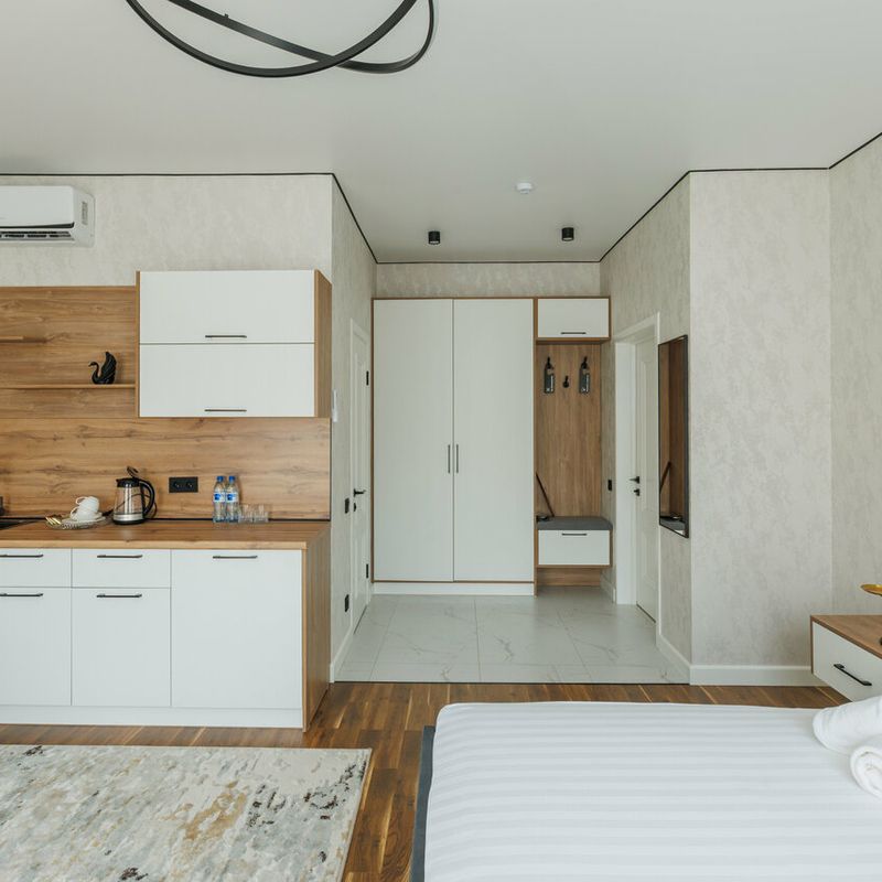 - Проживание в комфортных апартаментах с санузлом, феном и Wi-Fi.