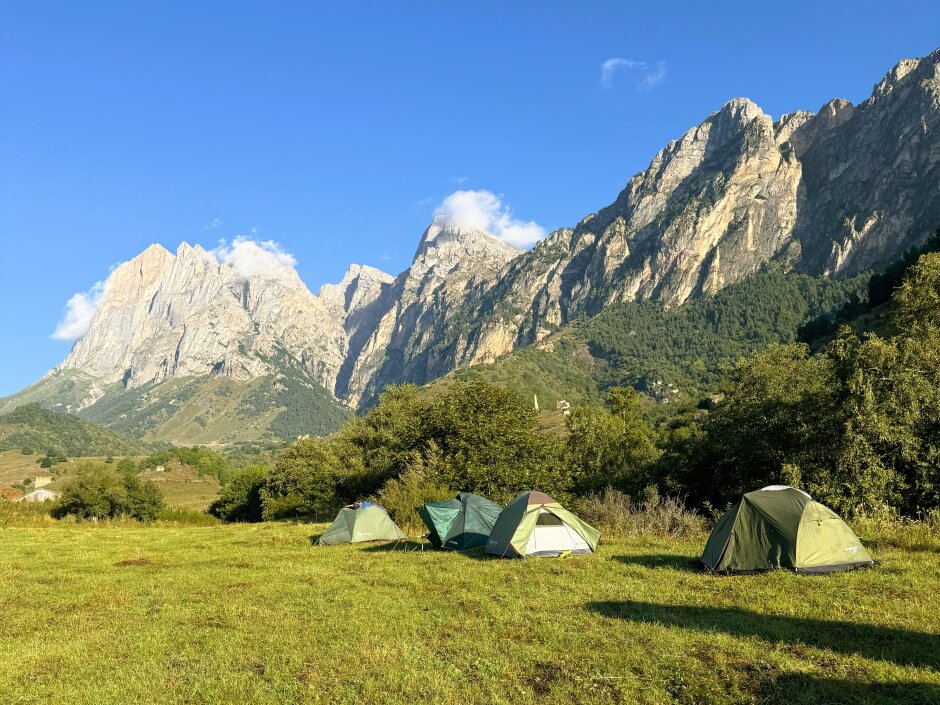 - Личное снаряжение: рюкзак или спортивная сумка, место в палатке, коврик, спальник, трекинговые палки (есть доступная аренда)