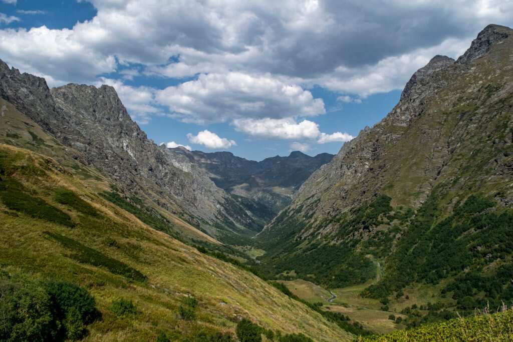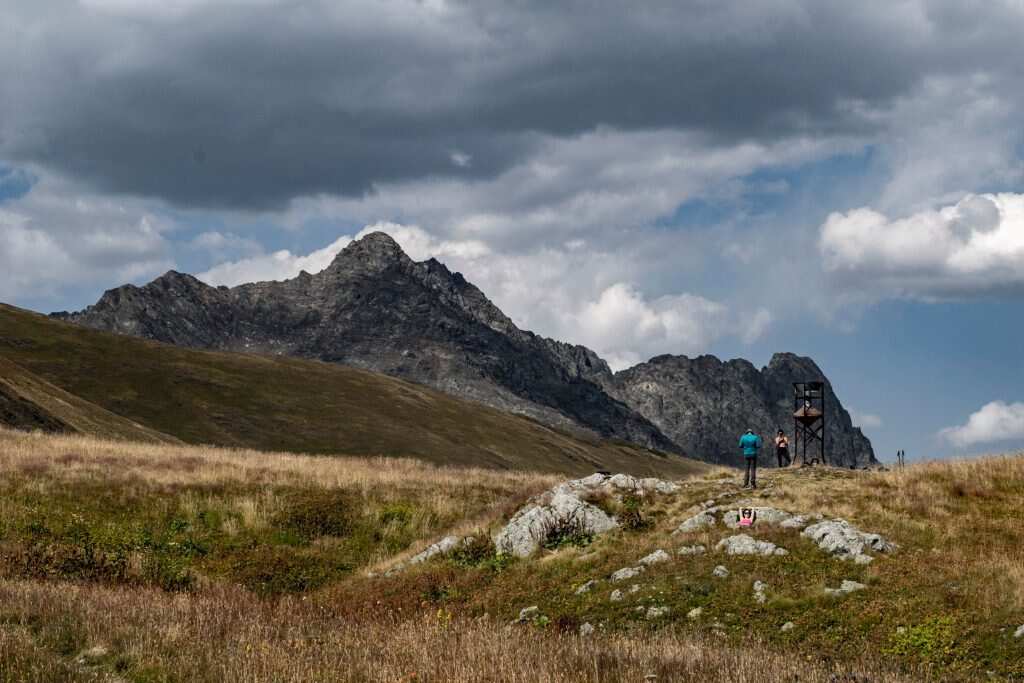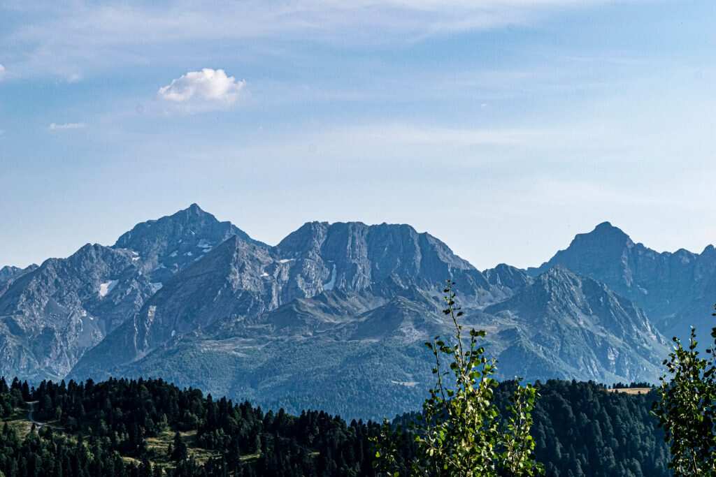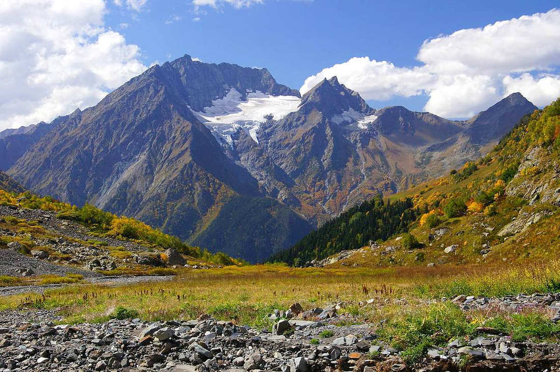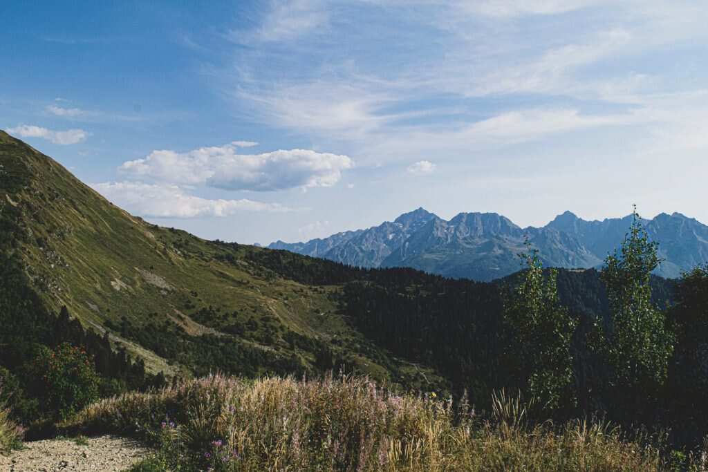 Наша тропа пролегает через хребет Балканский. С него открываются красивая панорама на западную часть Главного Кавказского Хребта и вершины Цахвоа и Магишо.