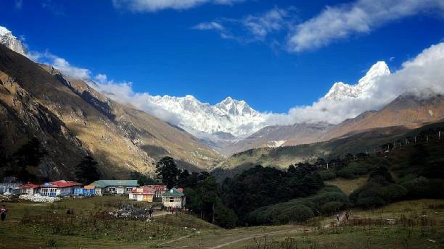 Leaving the picturesque Tengboche Monastery village behind, our path meanders downward, guiding us through verdant pine and rhododendron forests. Along this scenic trek, we are treated to magnificent vistas of the towering Mt. Everest, Lhotse, and the majestic Ama Dablam, which inspire a sense of wonder and awe.