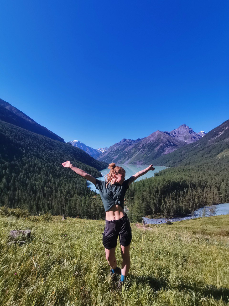 Покидаем Кучерлинское озеро и отправляемся дальше-мы все ближе к финишу нашего трека. Сегодня нам предстоит пройти 13 км по кедровому лесу, спускаясь все ниже вдоль реки Кучерла. Ночуем на живописной поляне недалеко от пастбищ с лошадьми и коровами. Если захочется, у лесника можно будет заказать лепешек (опять!:)) и кофе 3в1! Нигде кофе 3в1 не заходит так отлично, как в горах- напиток богов!:)