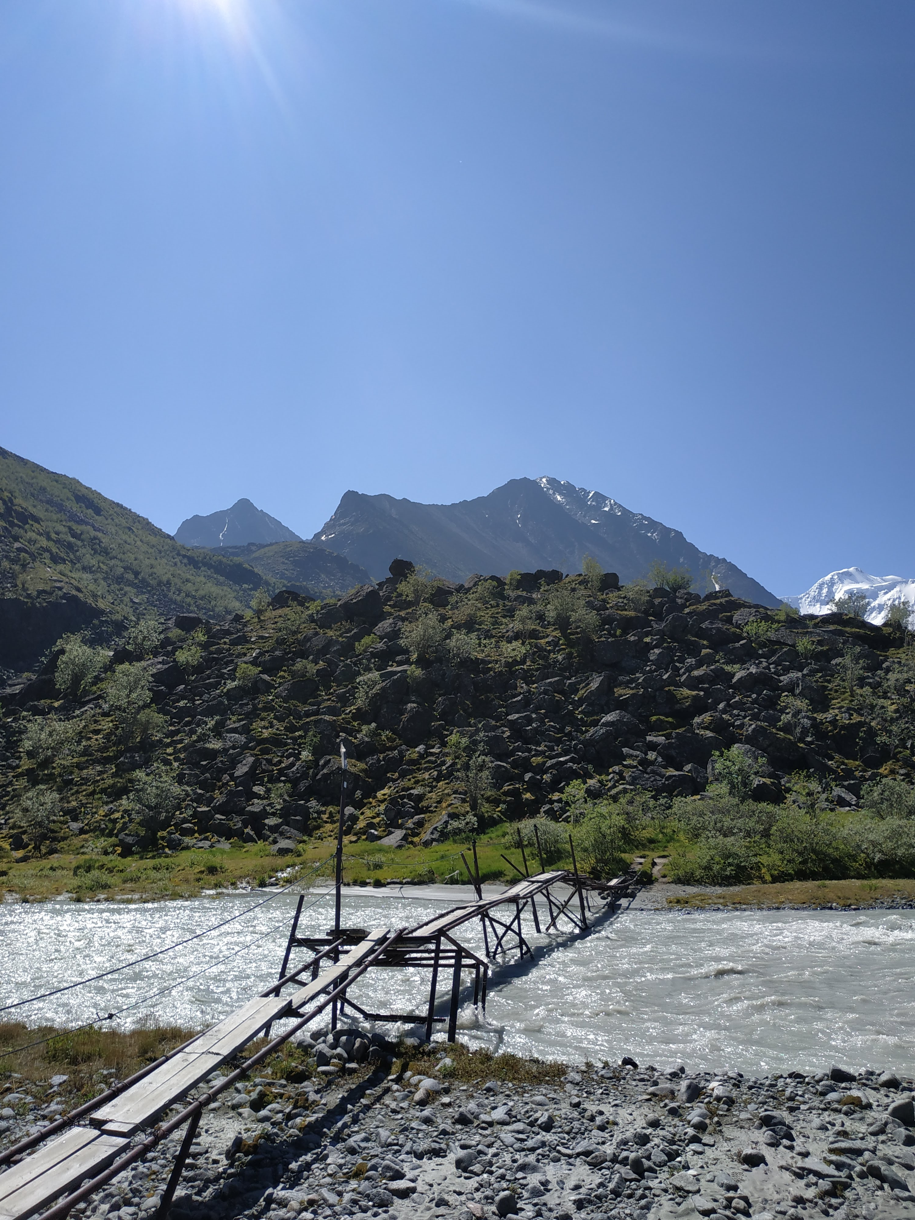 Во второй день рано просыпаемся, плотно завтракаем и садимся в Газ-66 (по-простому Шишига), который довезет нас до старта пешей части маршрута. Транспорт специальный для местных труднопроходимых дорог, поэтому особого комфорта не предвидится, зато сногсшибательные виды на горы гарантированы.После заброски пойдем пешком 14 км до нашего первого ночлега.Нас ждет вечер под звездным небом и звуки быстрой горной реки!