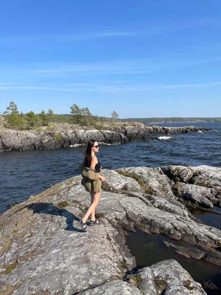 Дальше мы отправляемся на прогулку по Ладожским шхерам на скоростном катере. Это одна из самых красивых природных сцен Карелии: отвесные скалы, узкие проливы, свежий северный воздух, вода, острова и то самое чувство простора, за которым сюда едут. Мы будем высаживаться в особенно живописных местах, смотреть на Карелию с воды и проживать её не поверхностно, а глубоко, спокойно и с удовольствием.