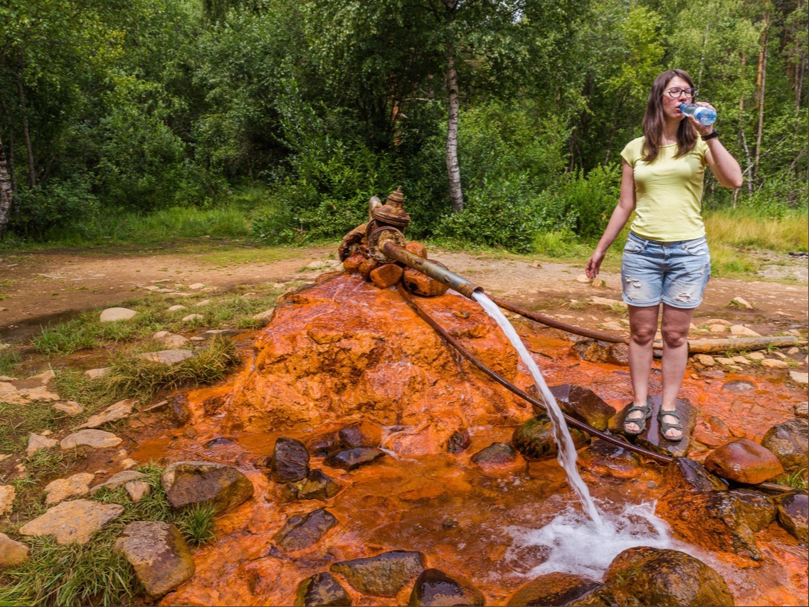 Чтобы размяться и начать акклиматизироваться, во второй половине дня прогуляемся по экологической тропе до Поляны нарзанов, где прямо из земли бьет настоящий нарзан с небольшим сероводородным привкусом.