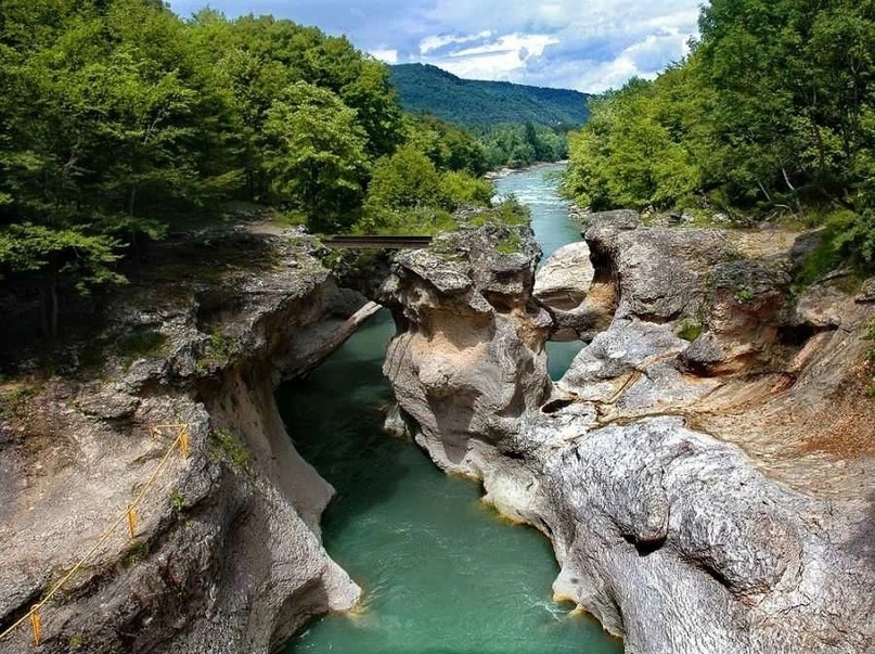 По пути заедем полюбоваться на красивейшую природную достопримечательность в окрестностях посёлка Каменномостский - Хаджохскую теснину.
